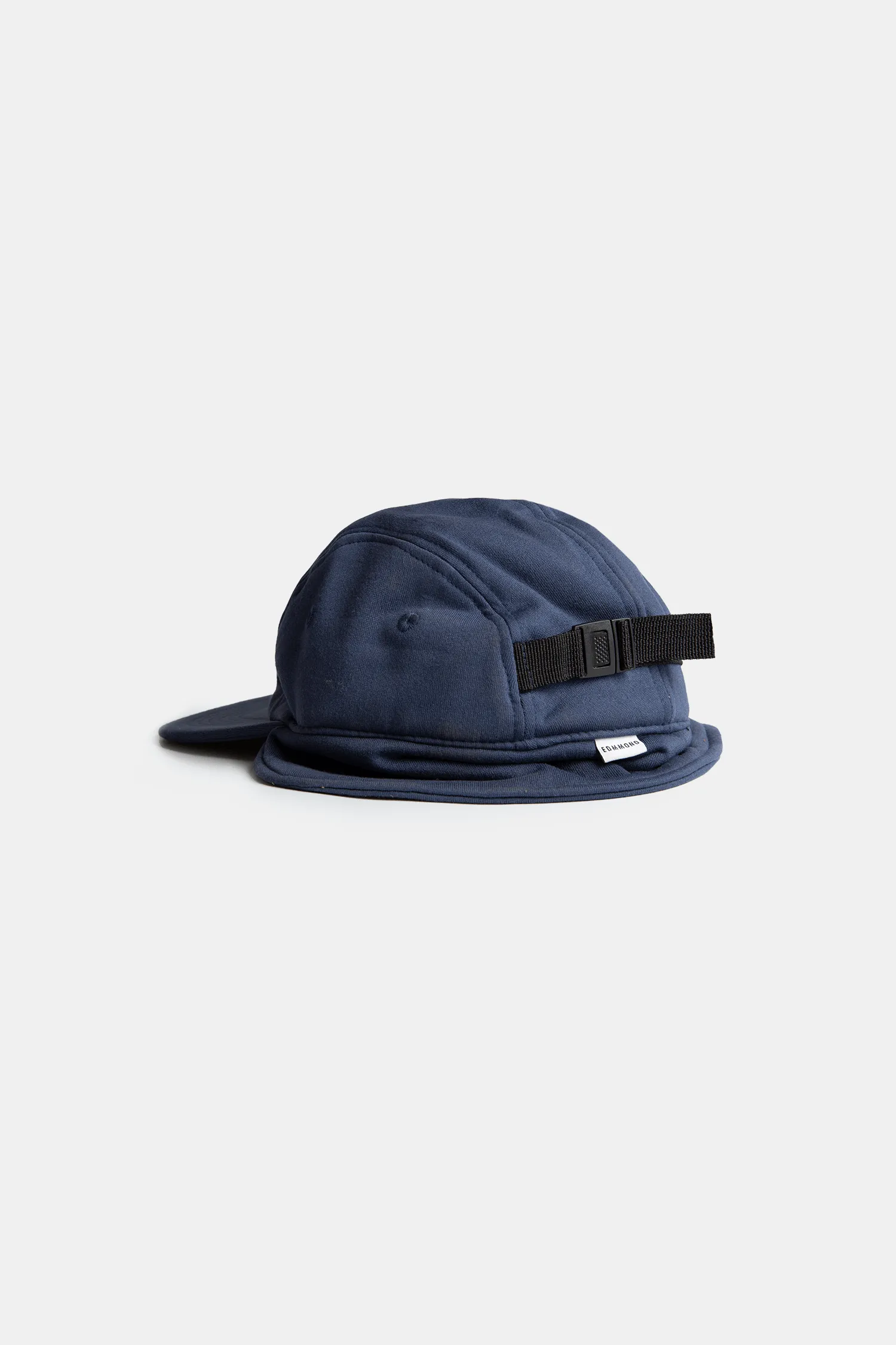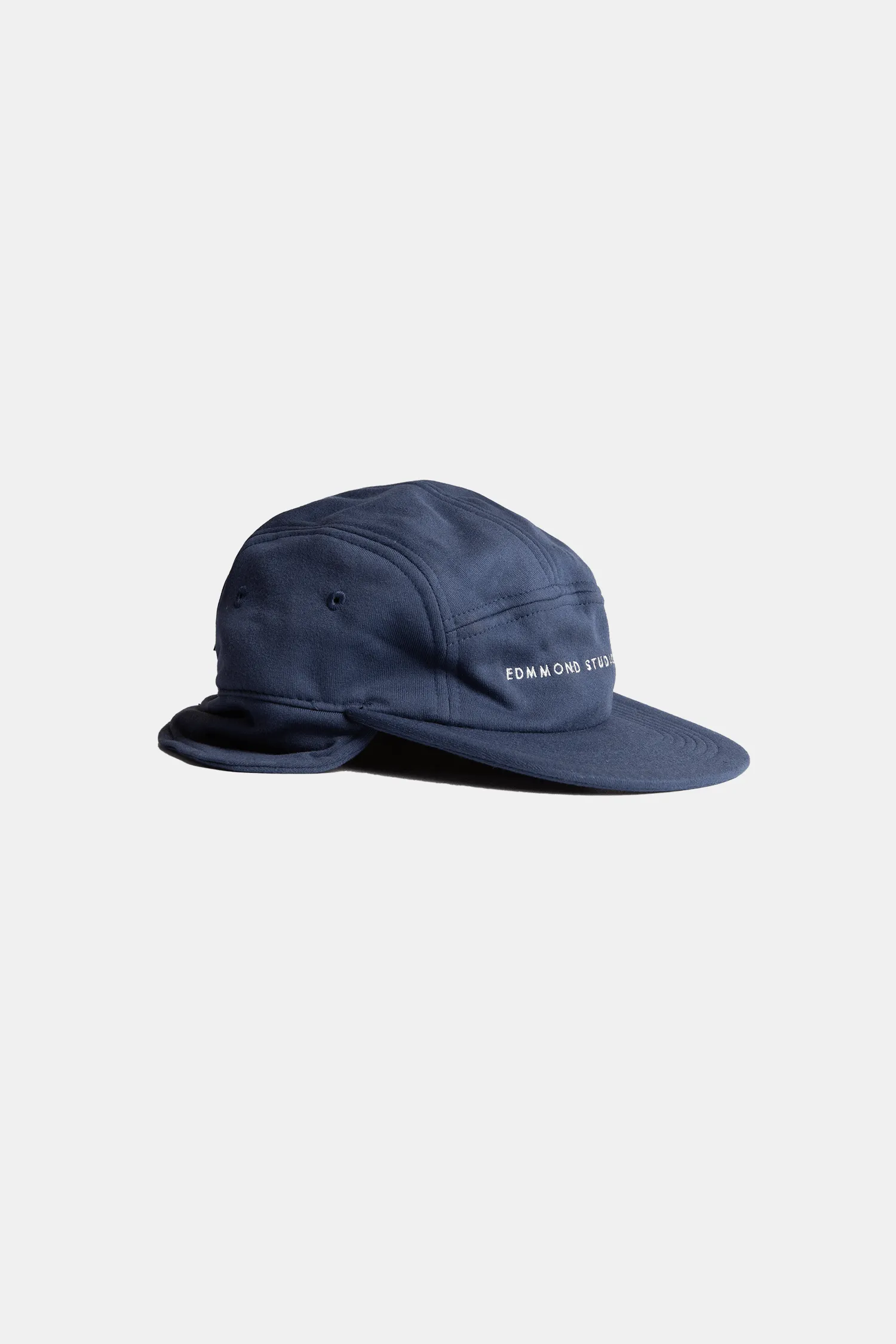 Cap with ear flaps, embroidered brand logo on the front and adjustable closure on the back.