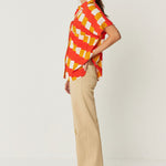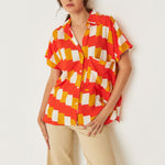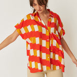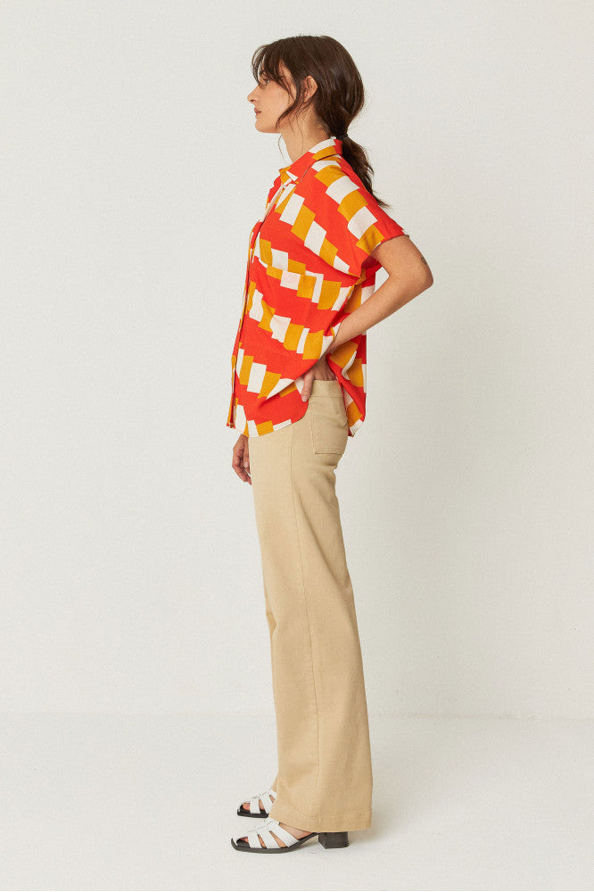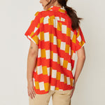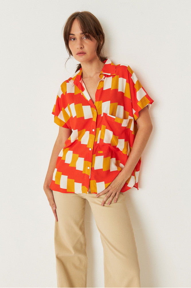 Loose-fitting sleeveless shirt with a classic collar and button-down front.