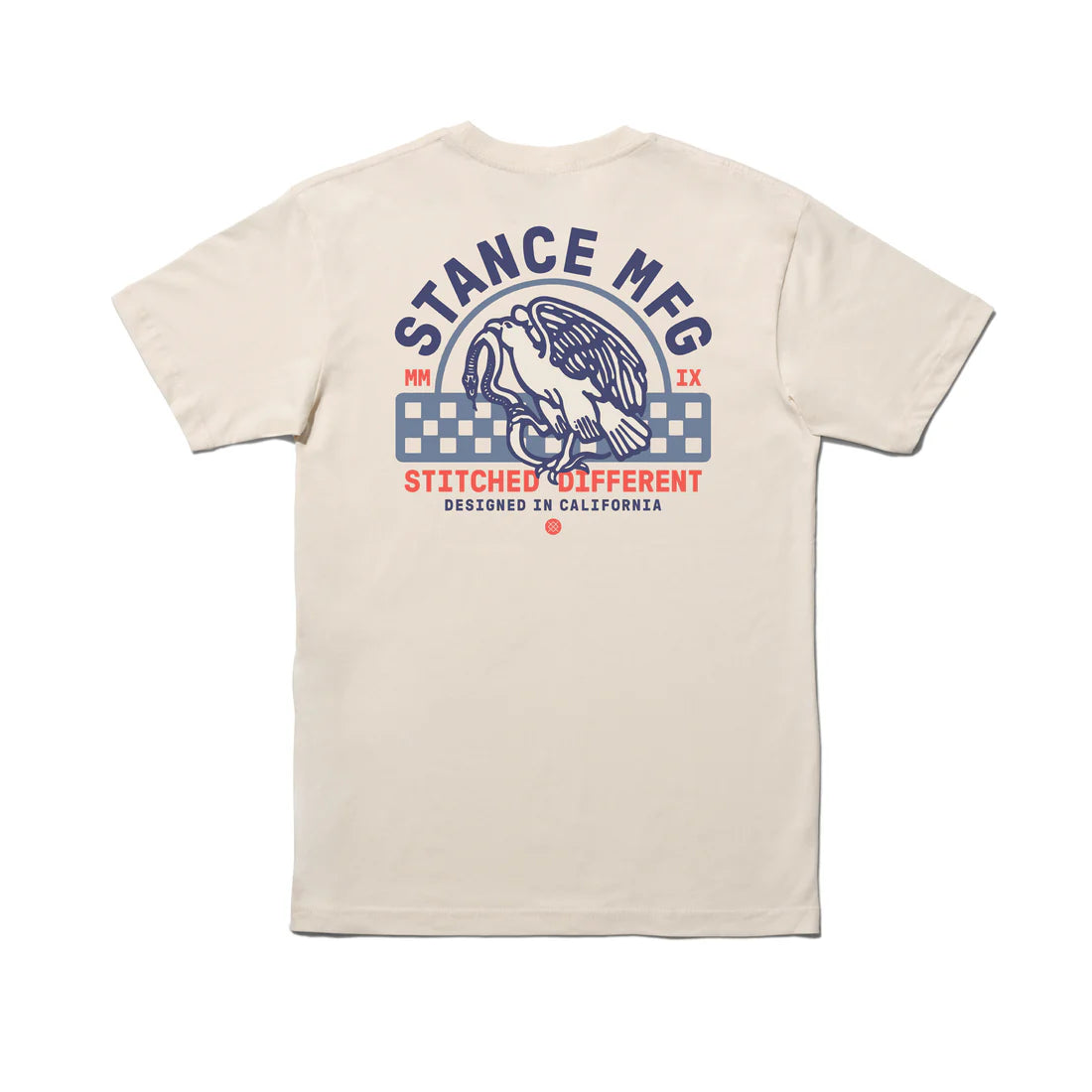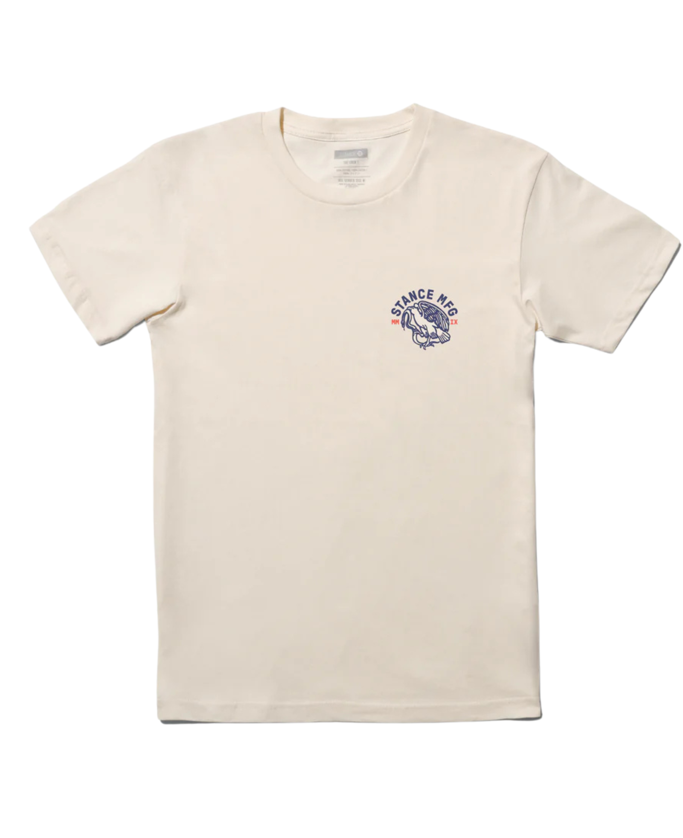 This casual short-sleeved t-shirt is a mid-weight combed cotton graphic tee.