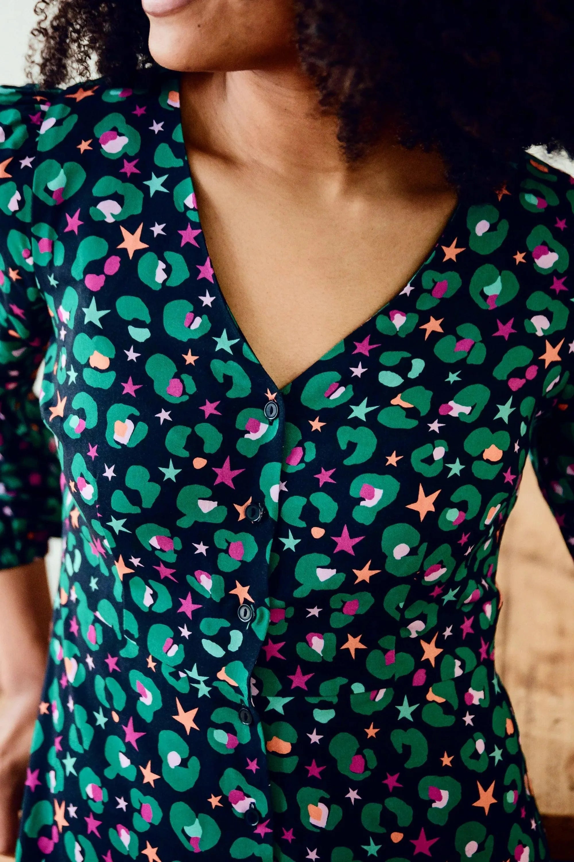 Sugarhill Natalia Tea Black Multi Star Leopard Dress