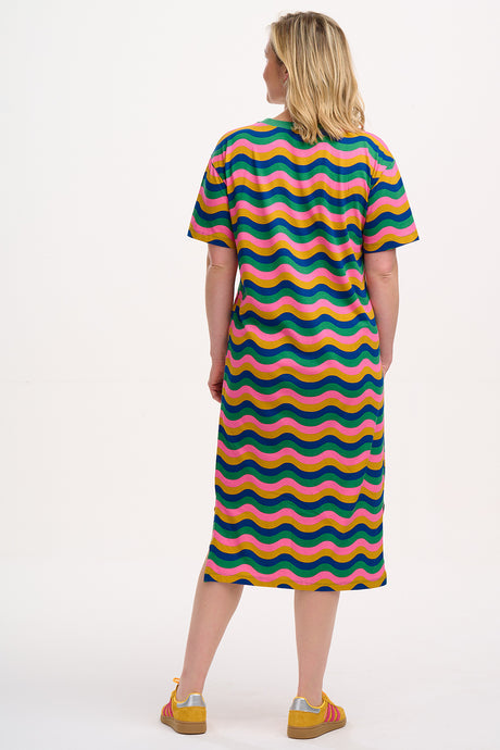 SUGARHILL Stephanie Midi Dress Multi Rainbow Waves