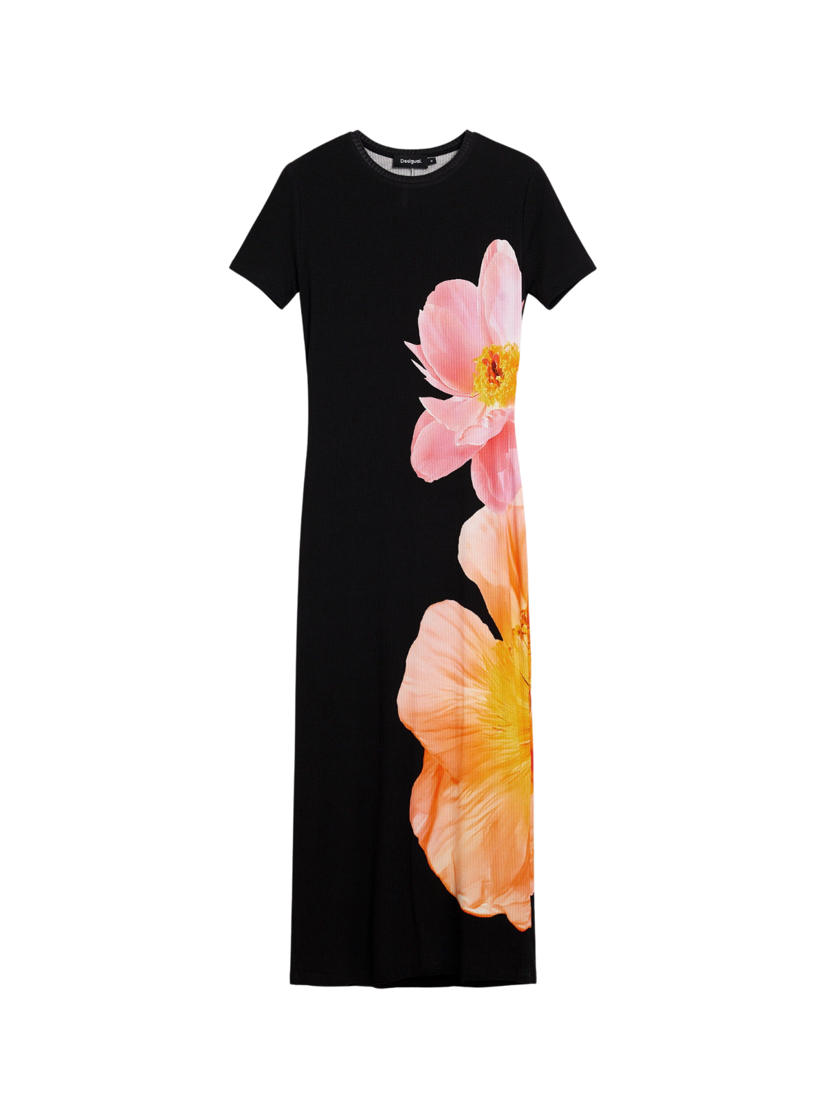 El vestido largo de flores de Desigual es una pieza femenina con una presencia marcada y un diseño gráfico floral que destaca por su contraste de colores y su estilo expresivo, fiel al ADN creativo de la marca. Una prenda pensada para aportar personalidad y movimiento en looks informales y veraniegos.