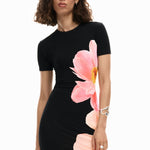 Con corte regular, manga corta y cuello redondo clásico, presenta una silueta cómoda y fácil de llevar. El estampado floral posicional aporta un acabado visual llamativo sin renunciar a la versatilidad, mientras que el diseño sin cierres favorece una caída fluida y natural.