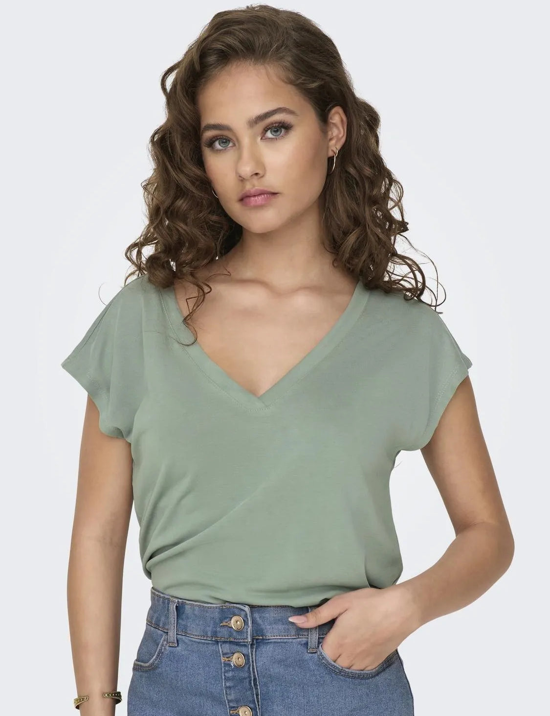 ONLY V-Neck T-Shirt Free Black