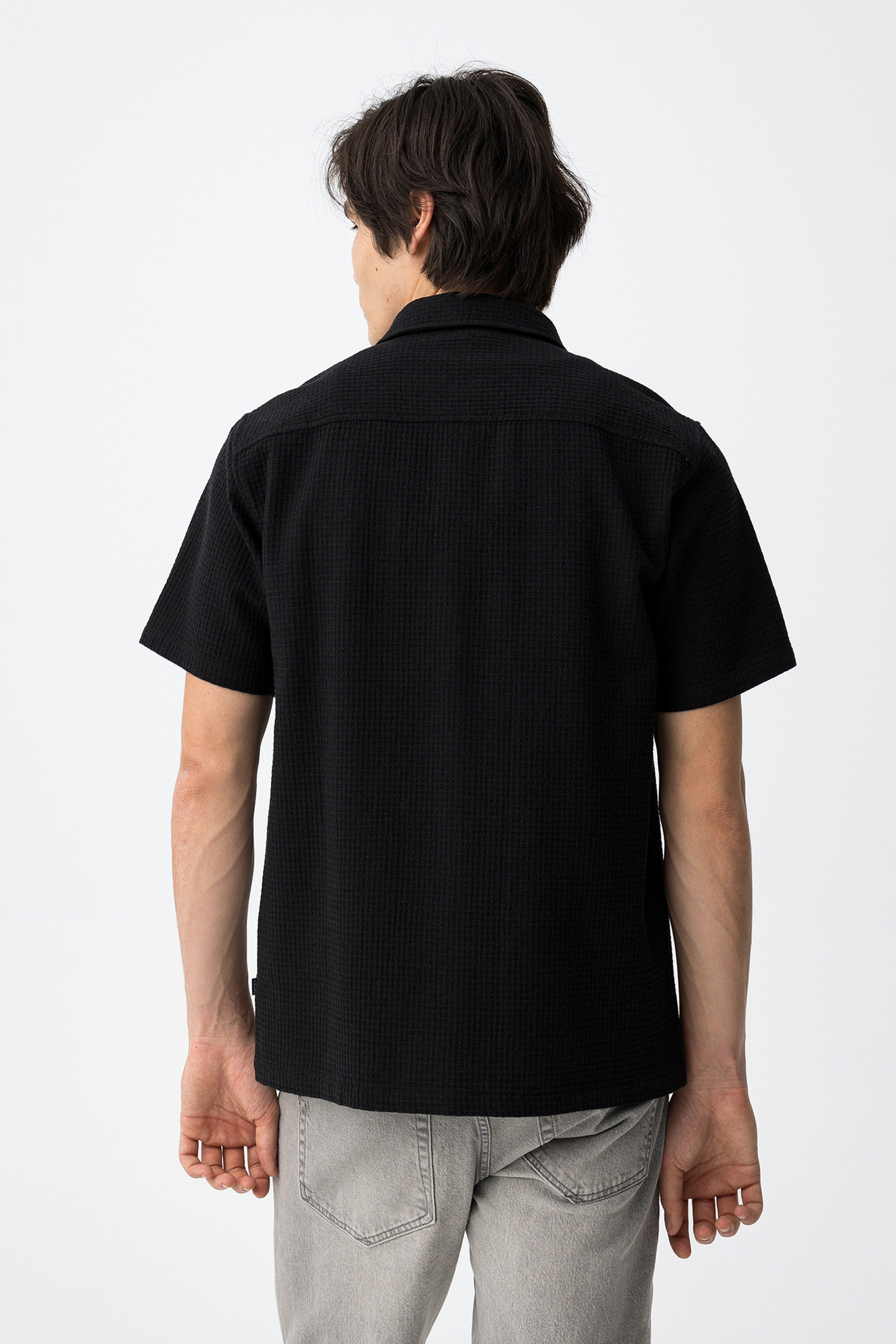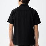 El diseño de la Kulkin parte de una construcción clásica de camisa de manga corta, con cuello tradicional y cierre frontal de botones. La base es muy limpia, lo que permite que el tejido y la proporción sean los verdaderos protagonistas.