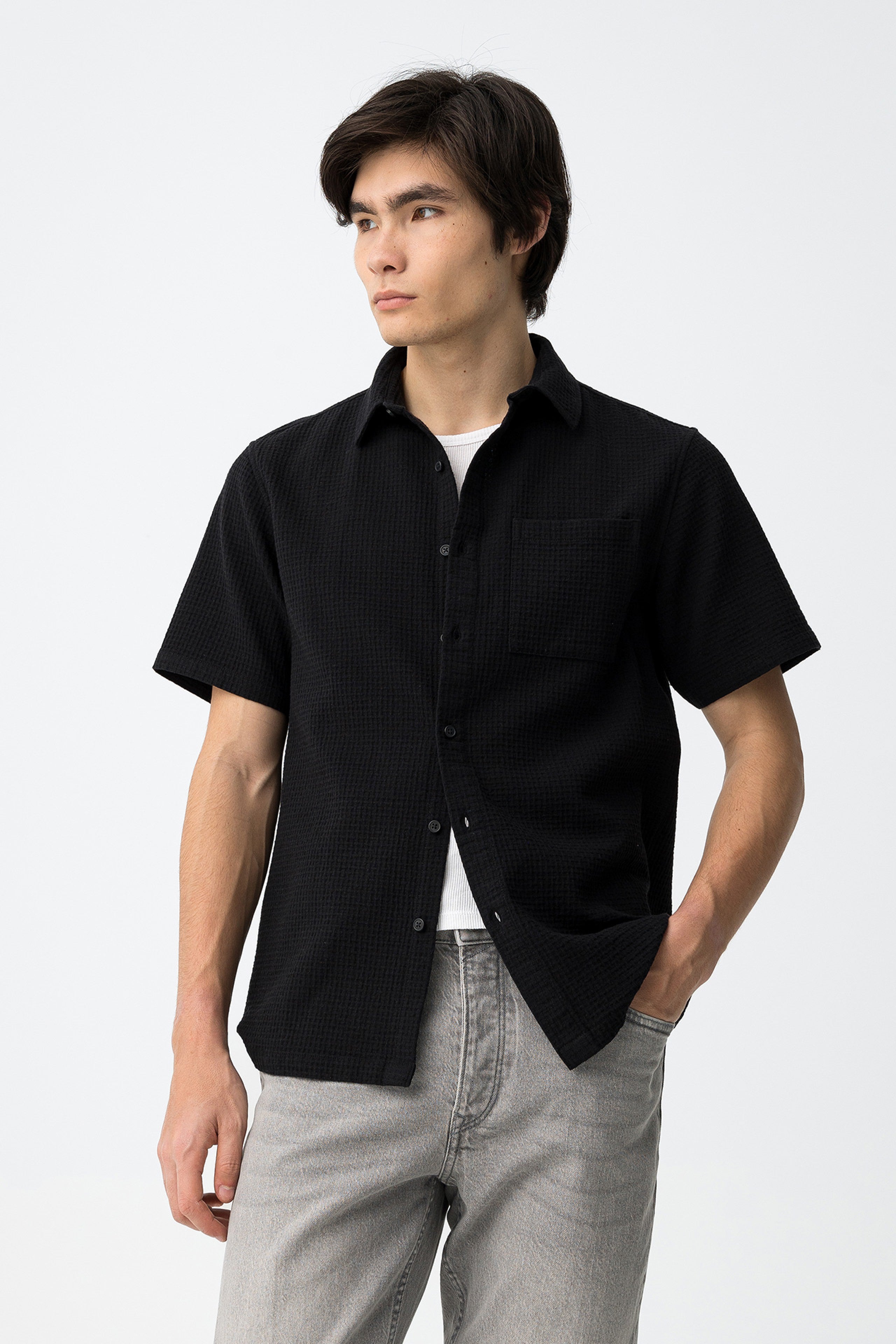 Es una opción coherente para quien valora prendas cómodas, discretas y fáciles de combinar. Una camisa de algodón bien resuelta, pensada para acompañar el día a día con naturalidad.