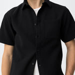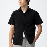 Es una camisa de hombre de manga corta, pensada para un uso casual y de temporada cálida.