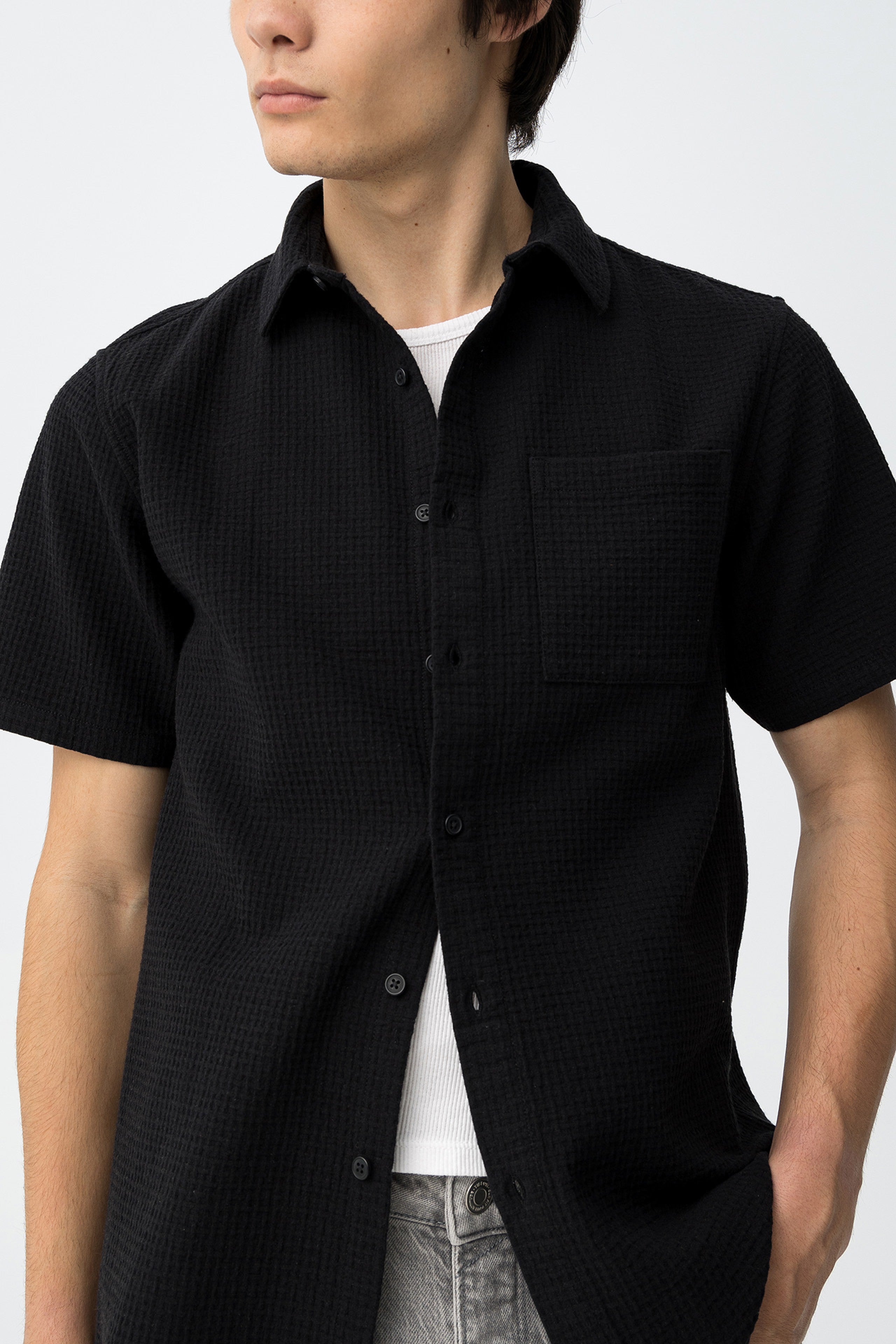 En uso real, funciona bien con bermudas, pantalones chinos, denim ligero o pantalones más relajados. Es una camisa pensada para aportar comodidad, orden visual y una presencia discreta sin perder personalidad.