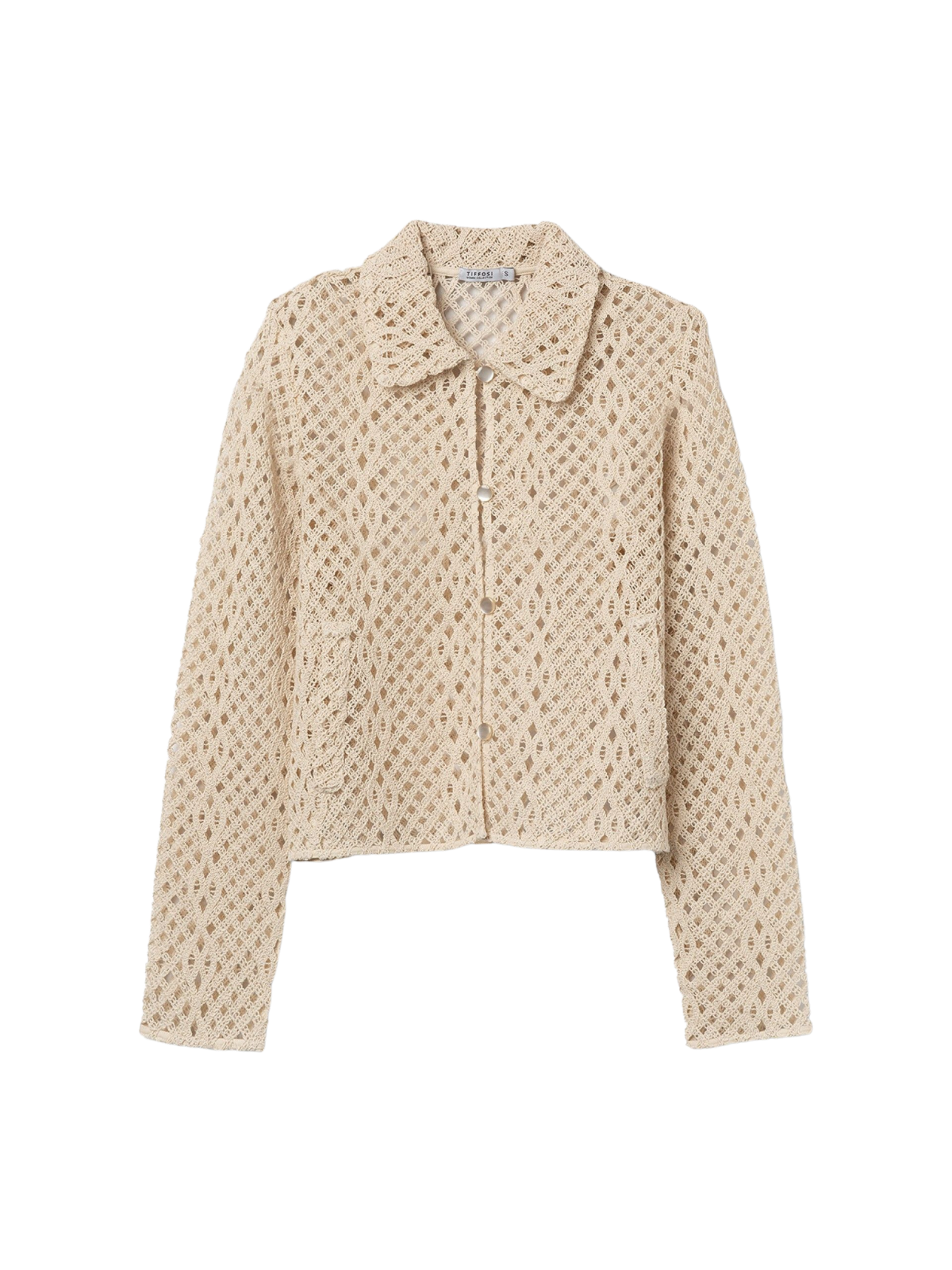 La Tiffosi Eliza es una sobrecamisa de mujer de líneas suaves y textura protagonista, pensada para aportar algo más de relieve visual a un look sencillo. Su diseño combina una silueta corta con un trabajo calado que le da una presencia más especial sin resultar excesiva.