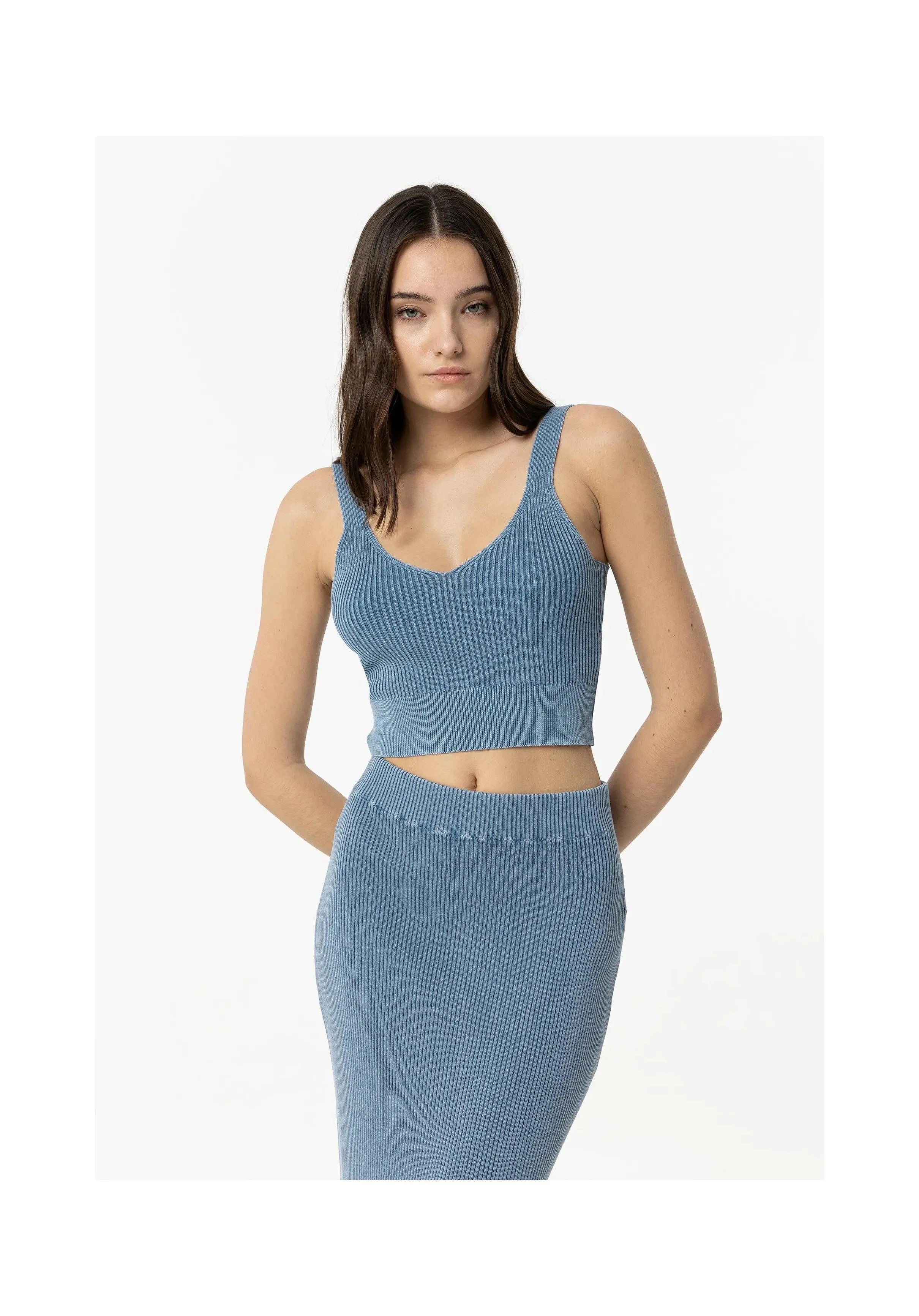 Crop top with V-neckline and straps.