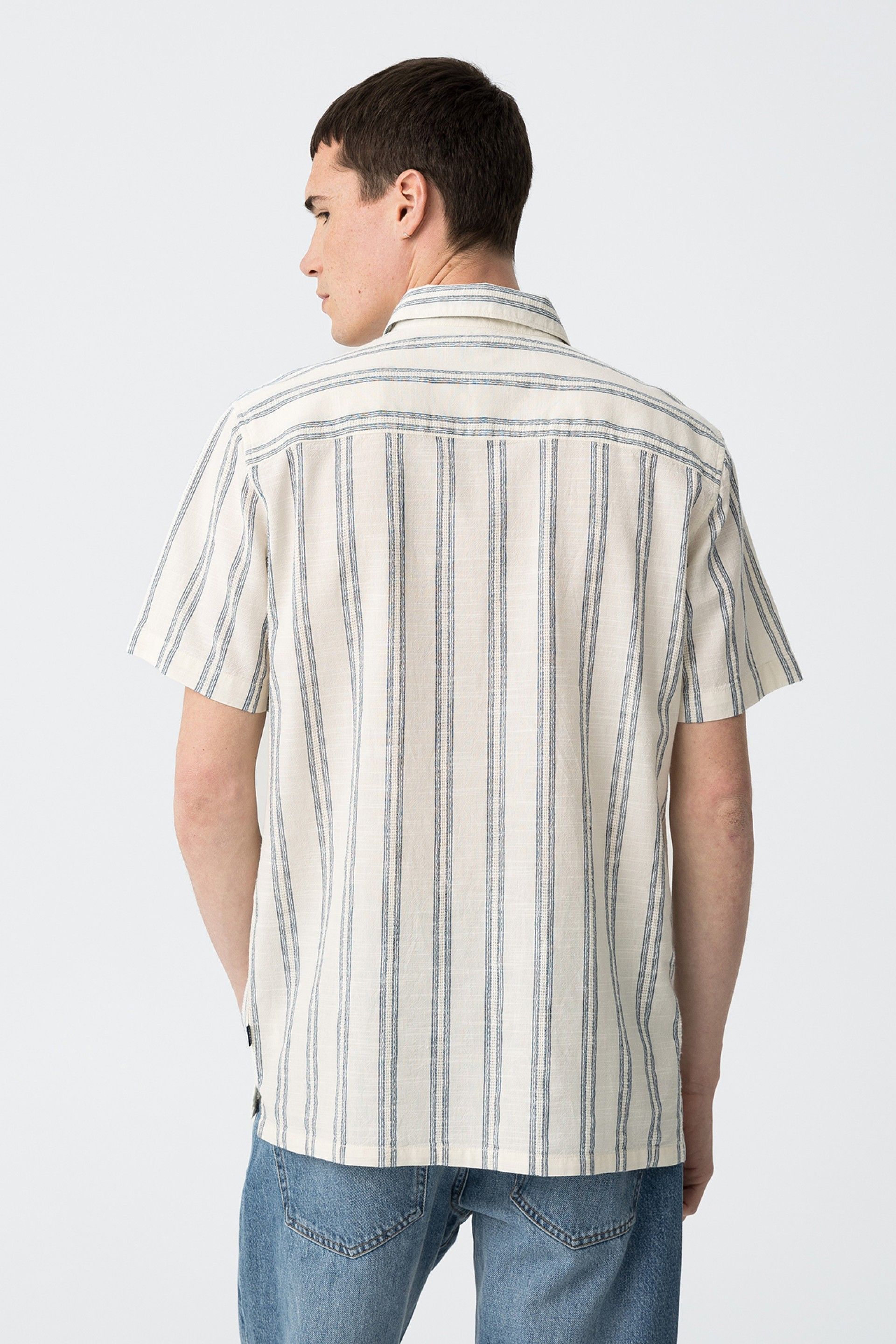 Regular-fit shirt with a button-down lapel collar and short sleeves. Chest pocket. Front button closure.