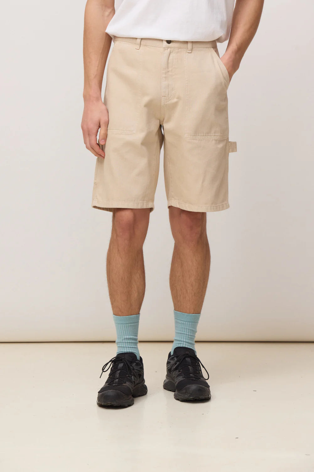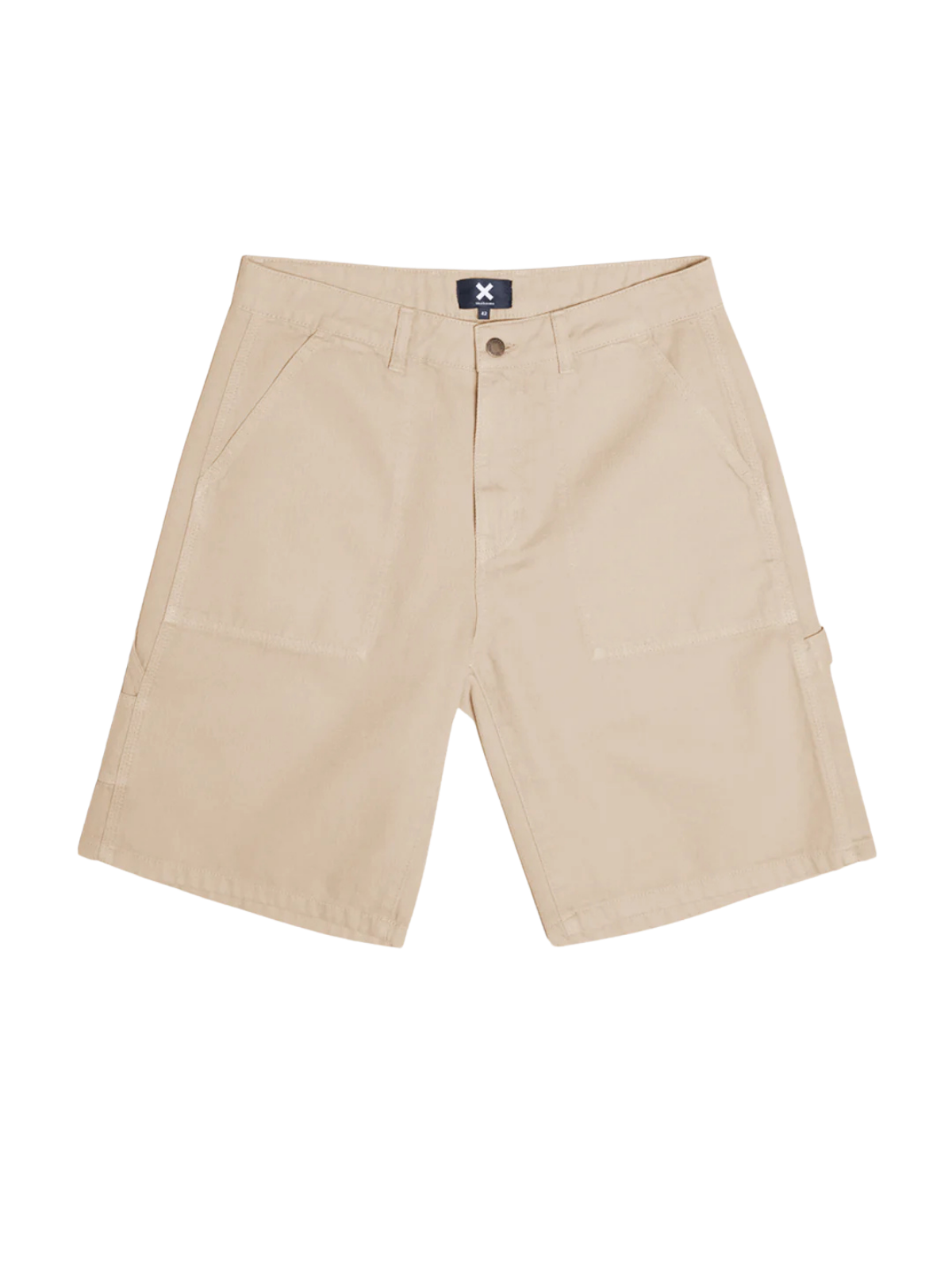 Porque ofrece algo más que una bermuda básica. El tejido de sarga, el corte recto y el detalle carpenter hacen que tenga más personalidad y más estructura visual que otros pantalones cortos más genéricos.