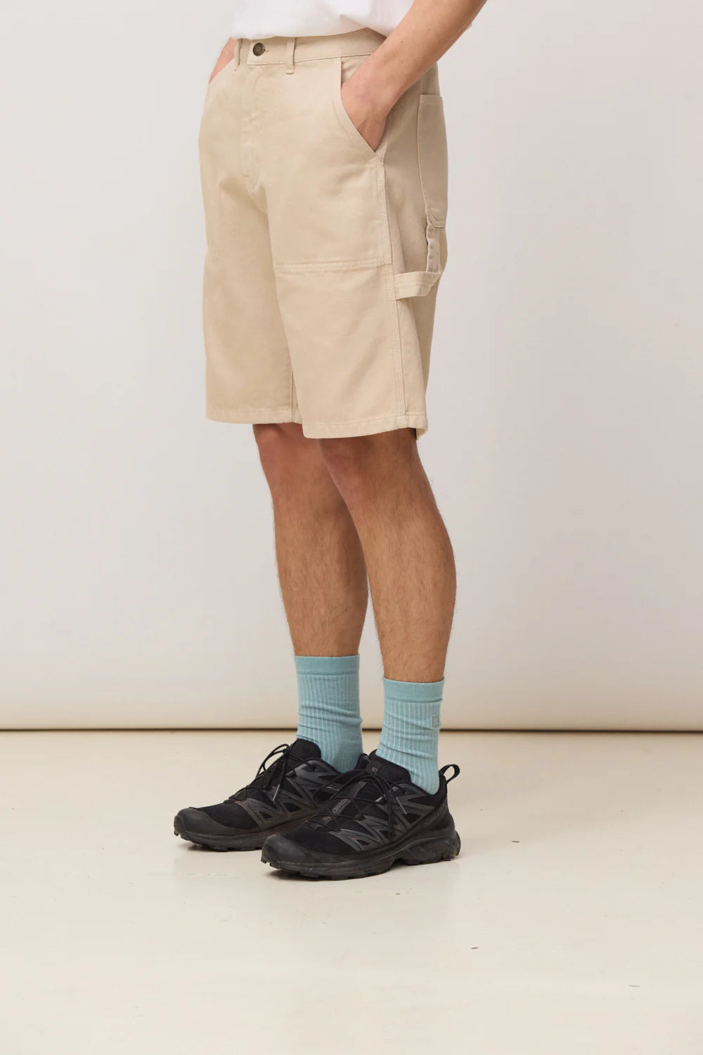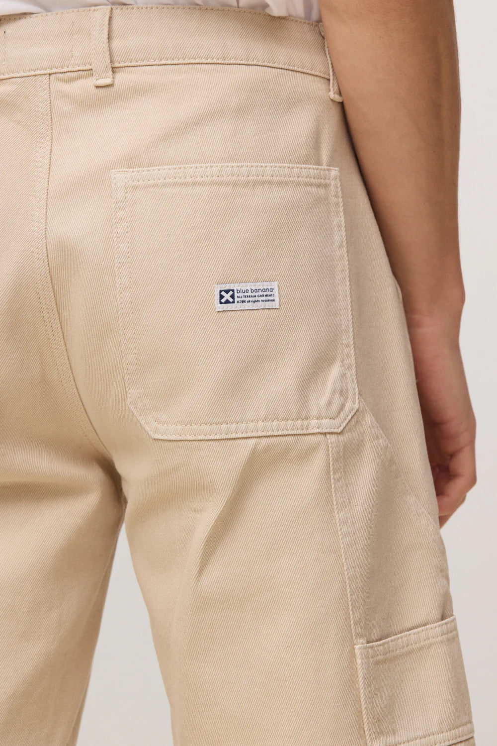 La bermuda Frank de Blue Banana es un pantalón corto de corte recto con una construcción claramente inspirada en códigos utilitarios. No se queda en una bermuda básica de verano: el tejido de sarga y la presencia del bolsillo carpenter le dan una lectura más trabajada y con más carácter dentro del armario casual.