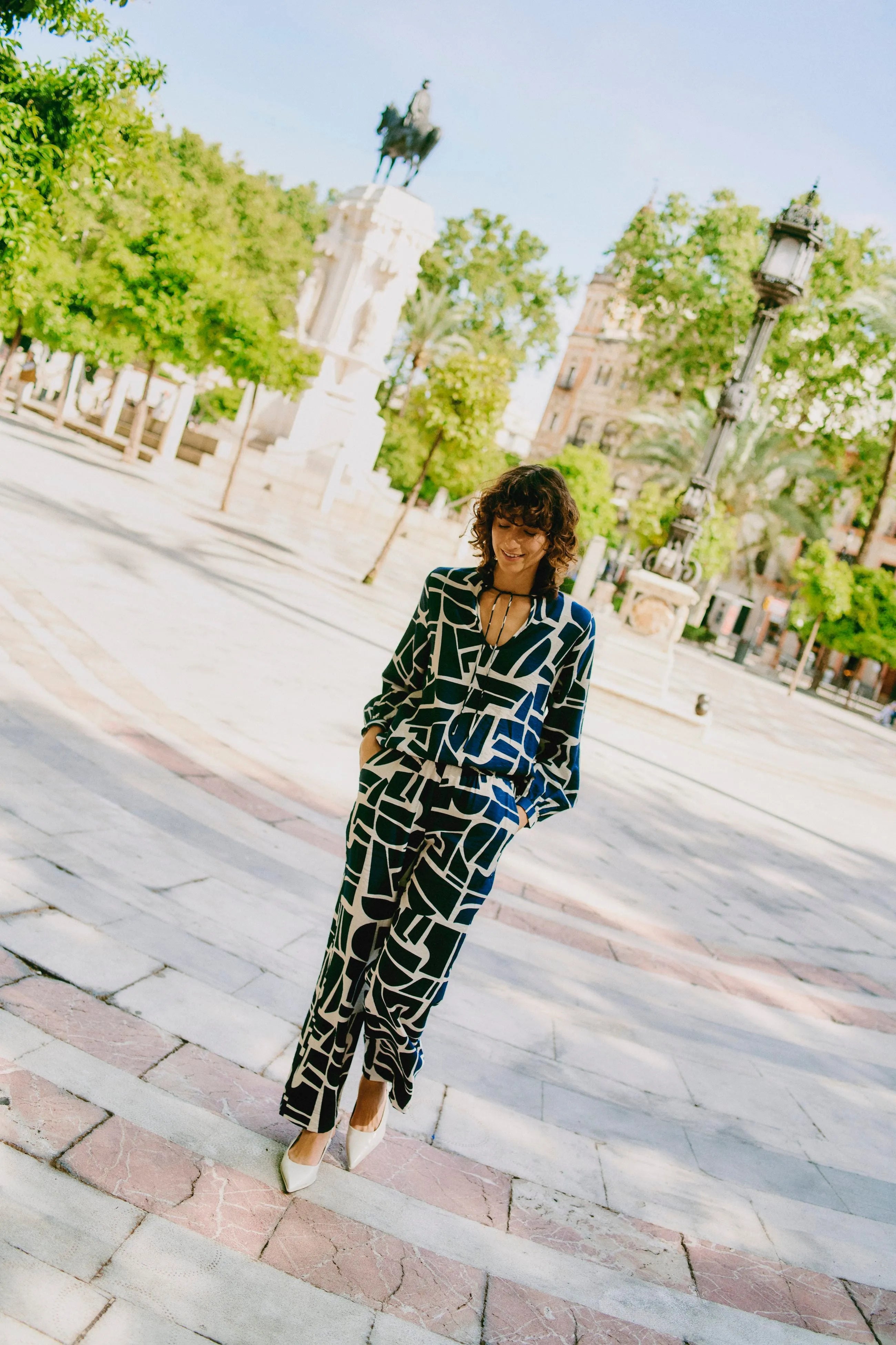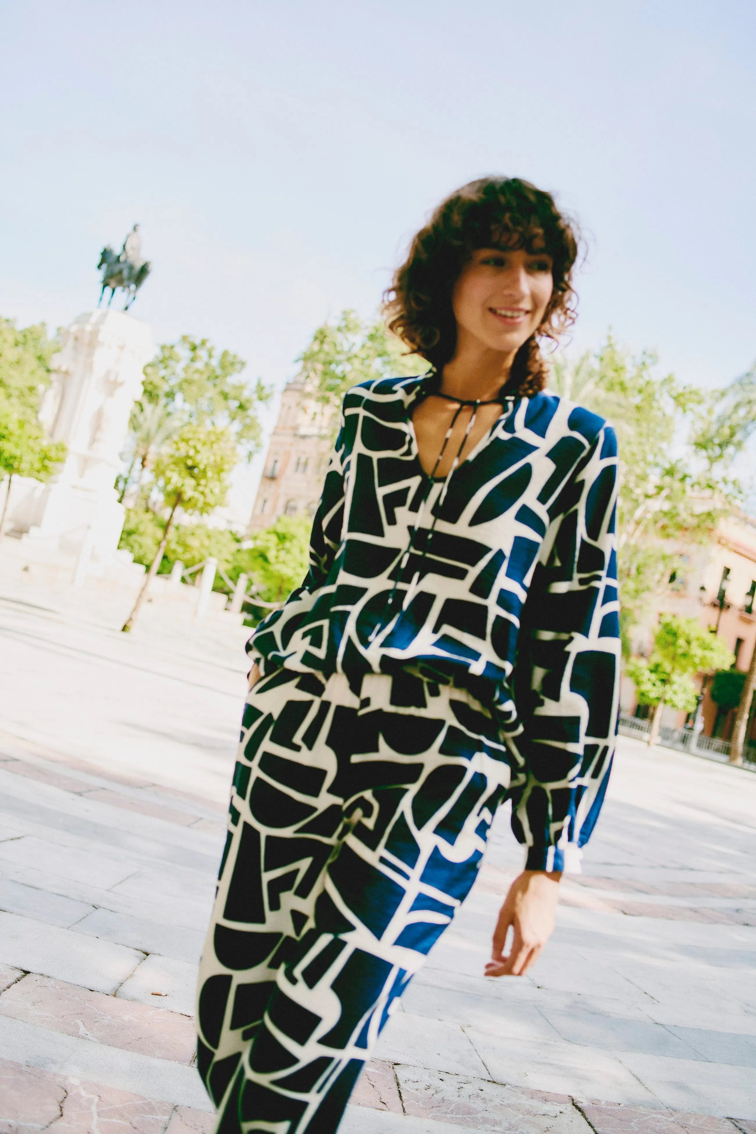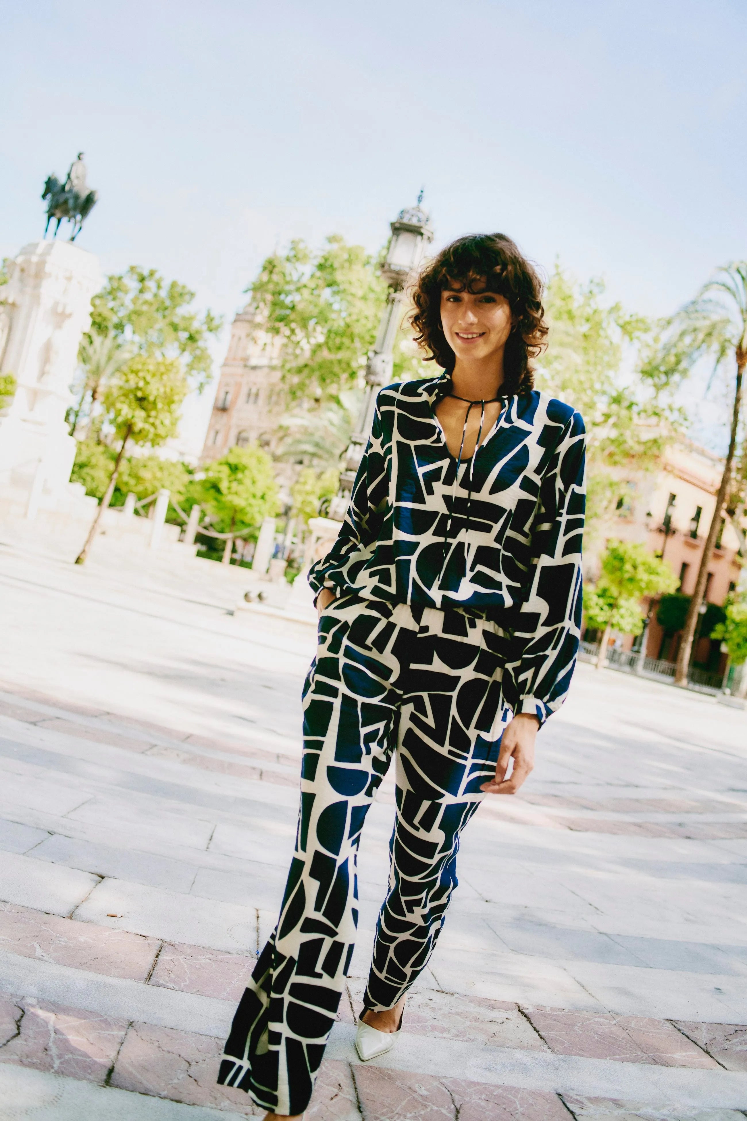 B.YOUNG Ihamma Med Blue Geo Trousers