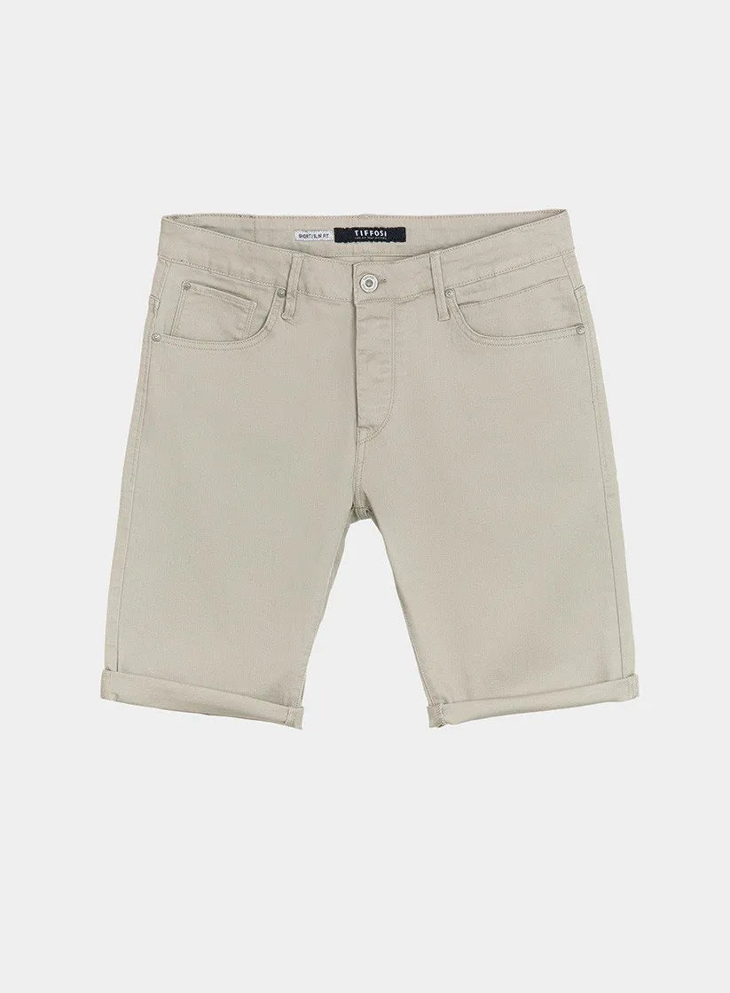 Slim-fit bermuda shorts in green with a "5 pockets" cut.