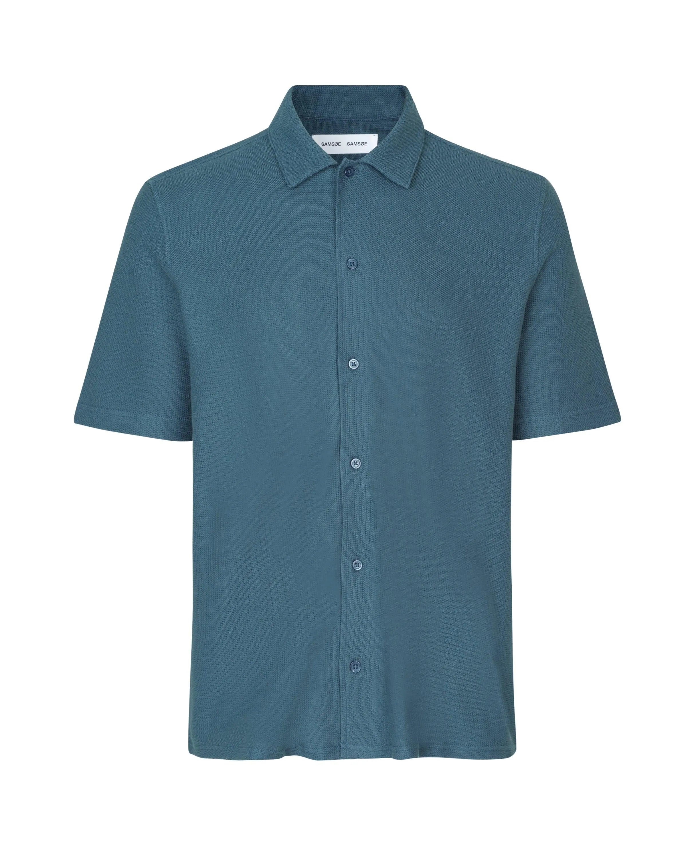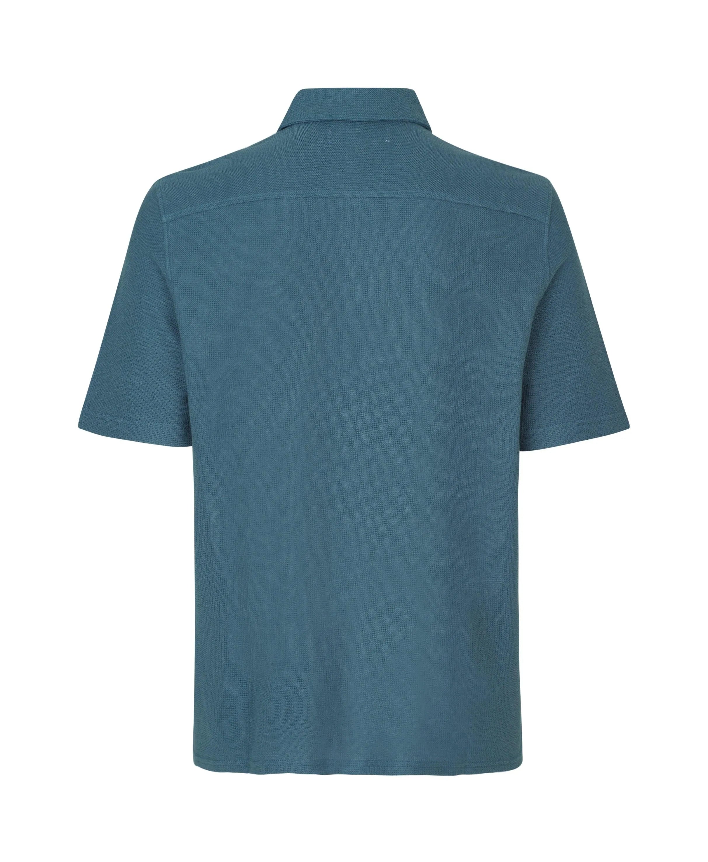 Loose short-sleeved shirt. Cut the neck. Button closure. GOTS-tex certified 100% organic cotton with fine waffle structure.