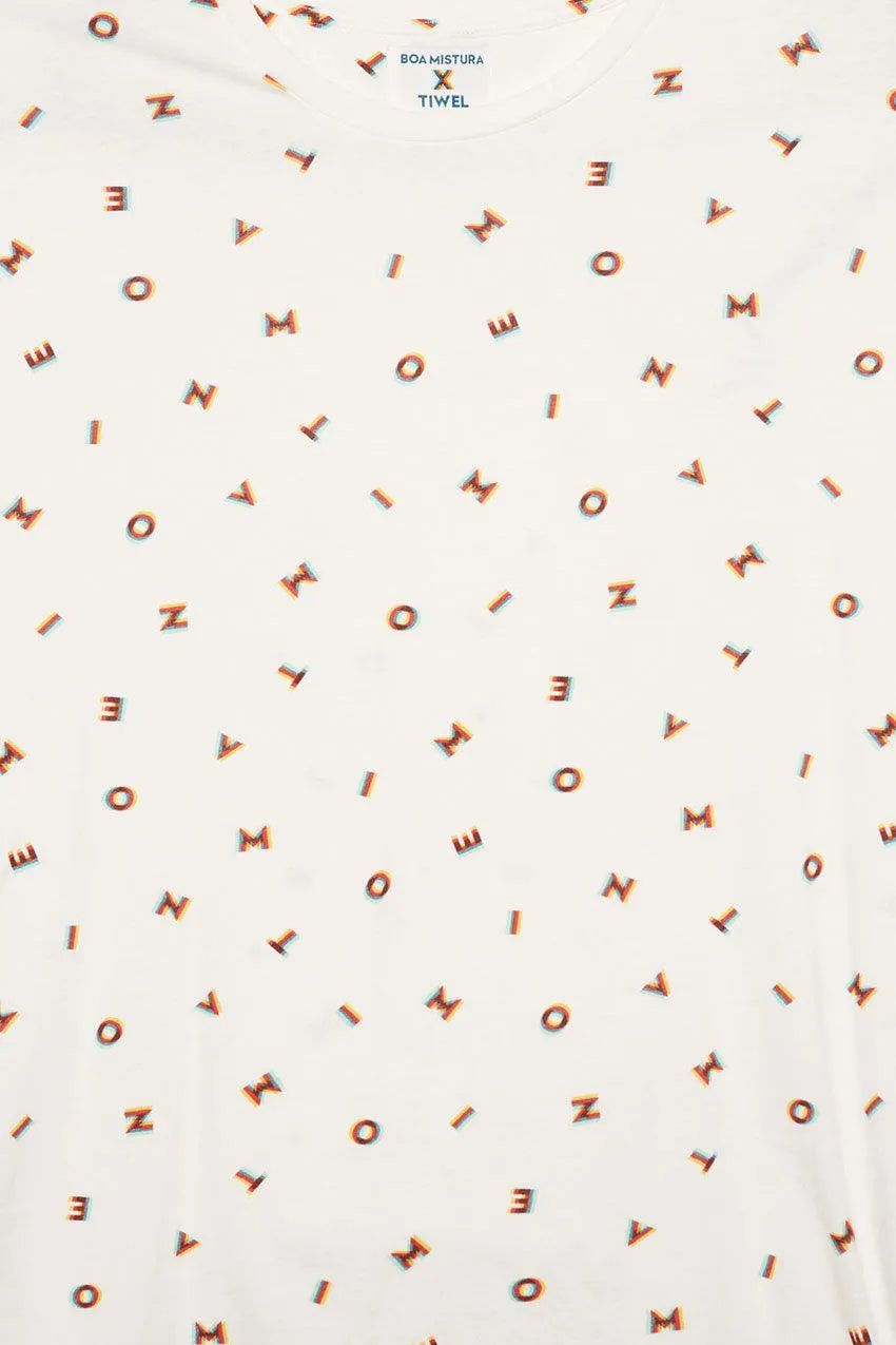 Move organic cotton T-shirt with all-over-print design and decoration with the letters of the word “Movement". Designed, exclusively and limited edition, for the new themed capsule of Boa mistura. Very cool fabric, comfortable, soft and pleasant to the touch. Decorative logo labels on the sleeve and on the back and lower right, soft wash and basic fit.