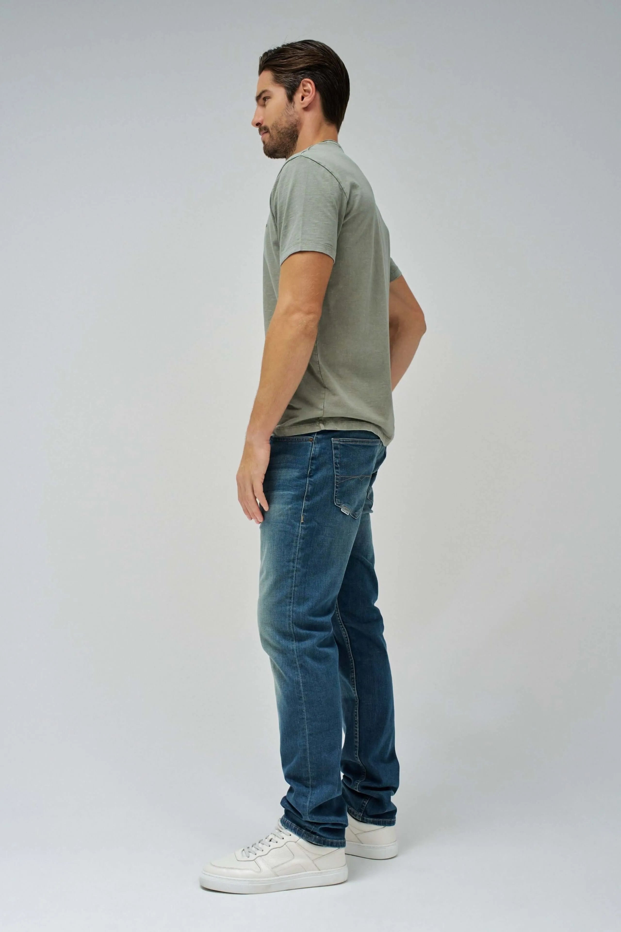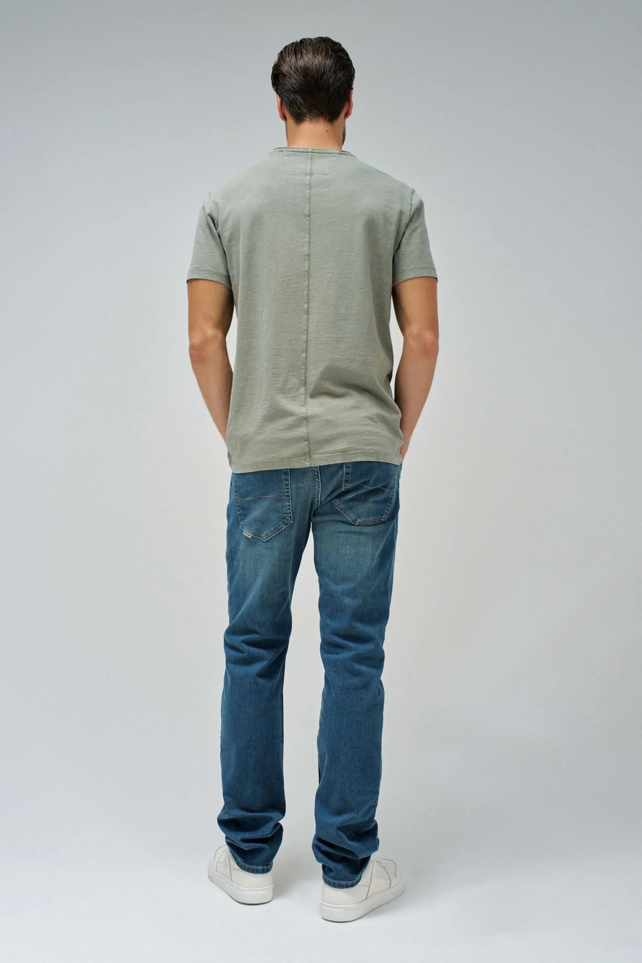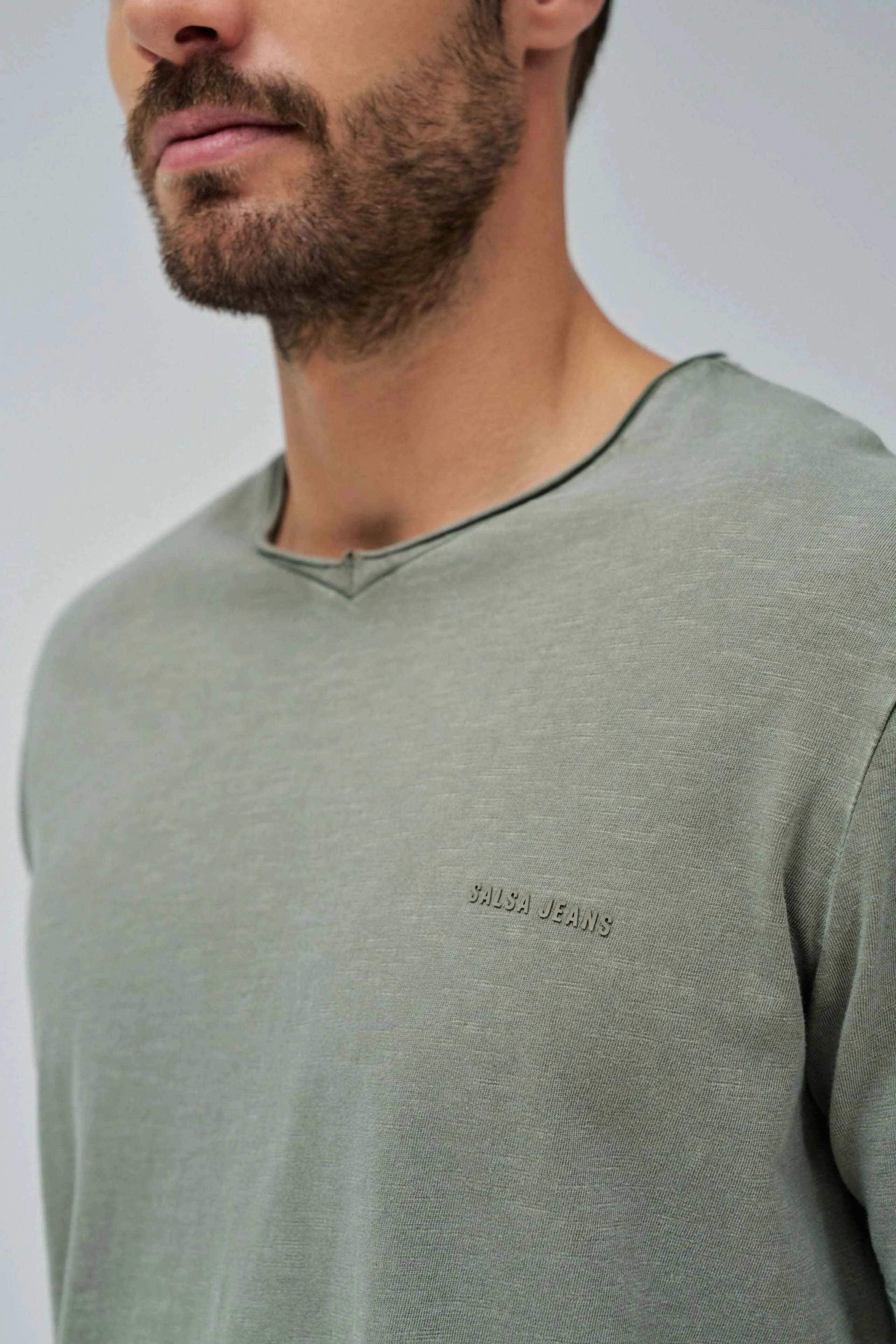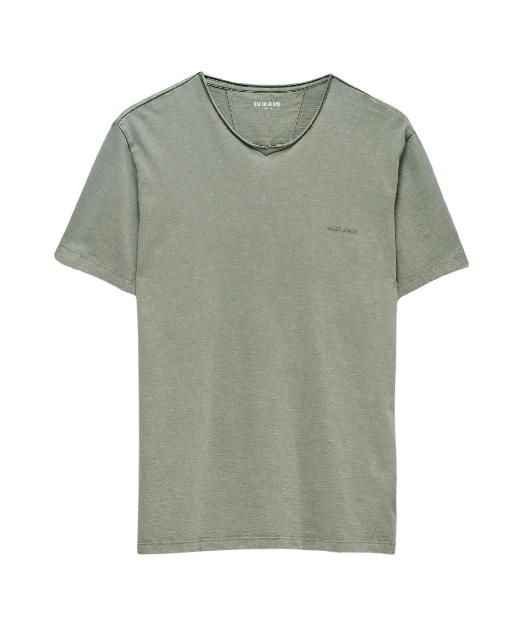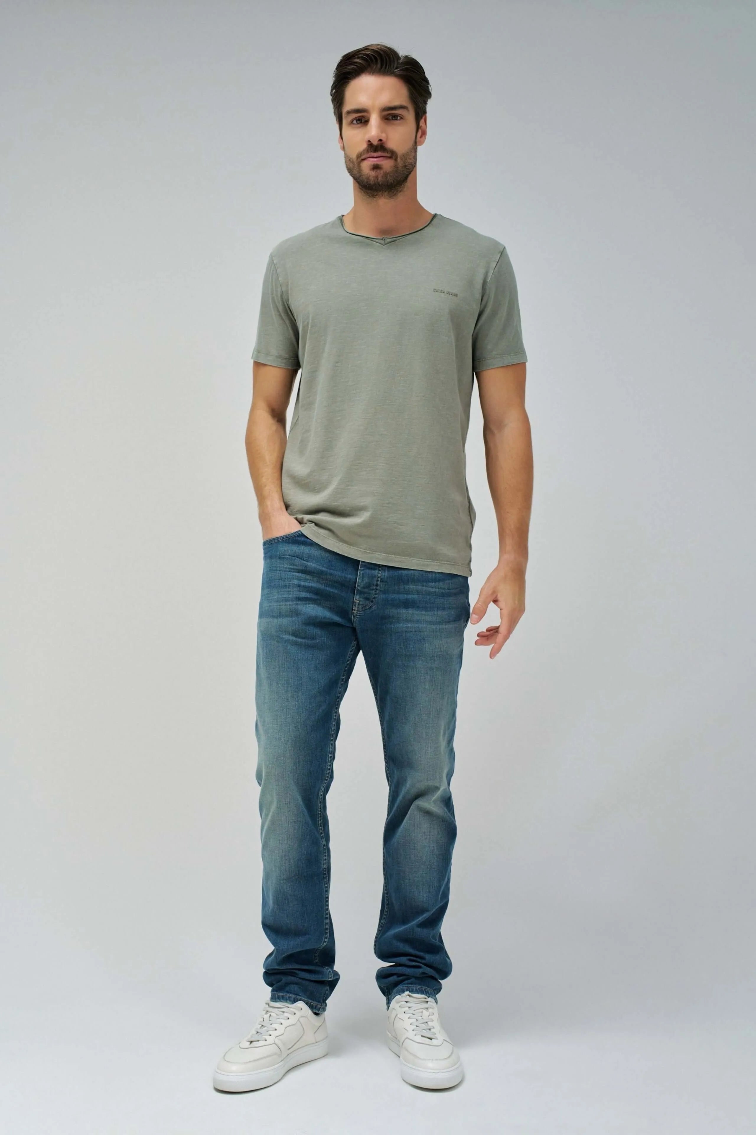 Tie-dye T-shirt. Logo detail on the chest. Blue. Slim fit. Short sleeves. V-neck.
