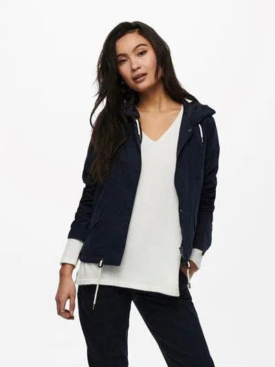 Solid color jacket- Closure on the front section- Hood with drawstring- One pocket on the chest- Two front pockets with flaps- Drawstring at the hem- Long sleeves and cuffs with buttons- Length of the front section: 58 cm in in size S- Back length: 64 cm in size S- The model is wearing size S