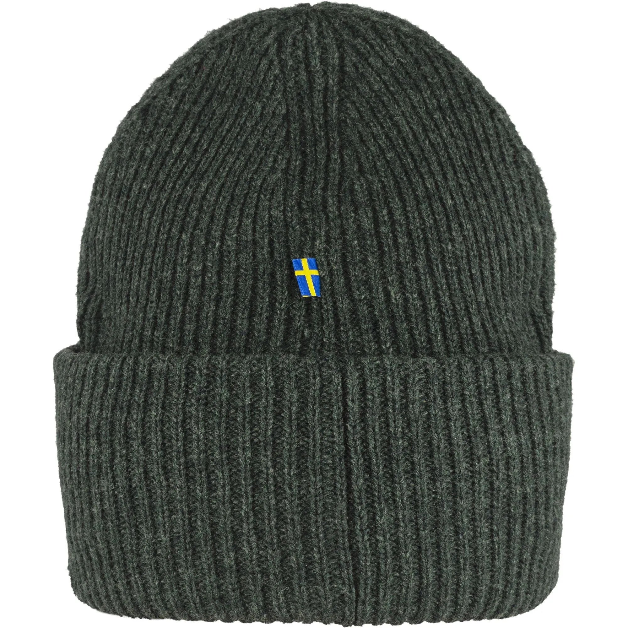 Rib knit hat in soft and warm lambswool. Sturdy two-layer fabric with wide folded edge. Fjällräven emblem embroidered on the front.