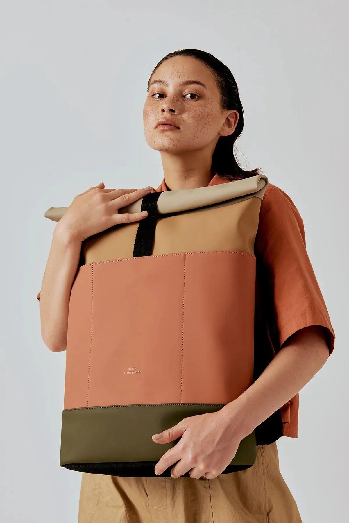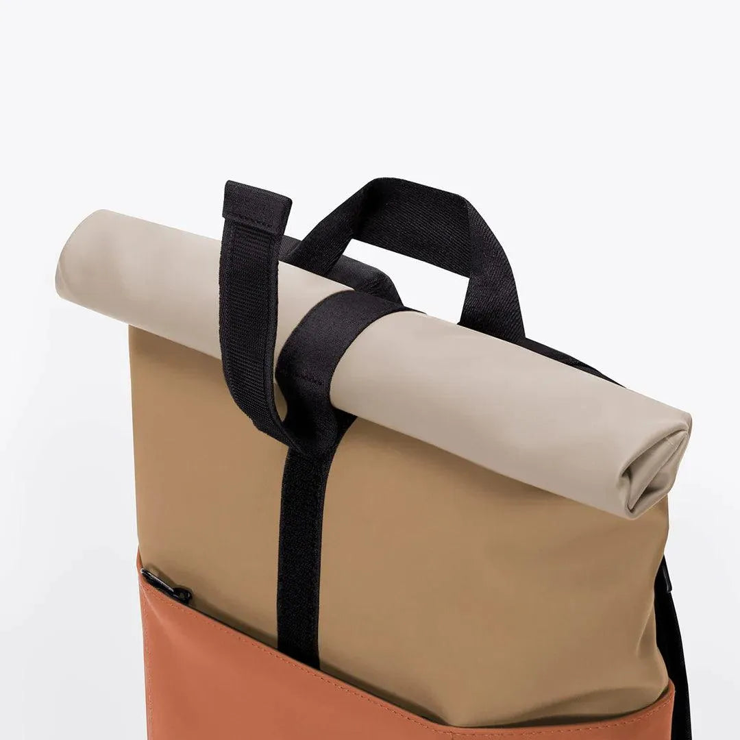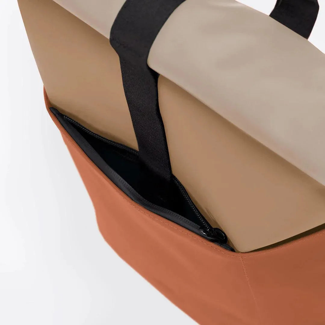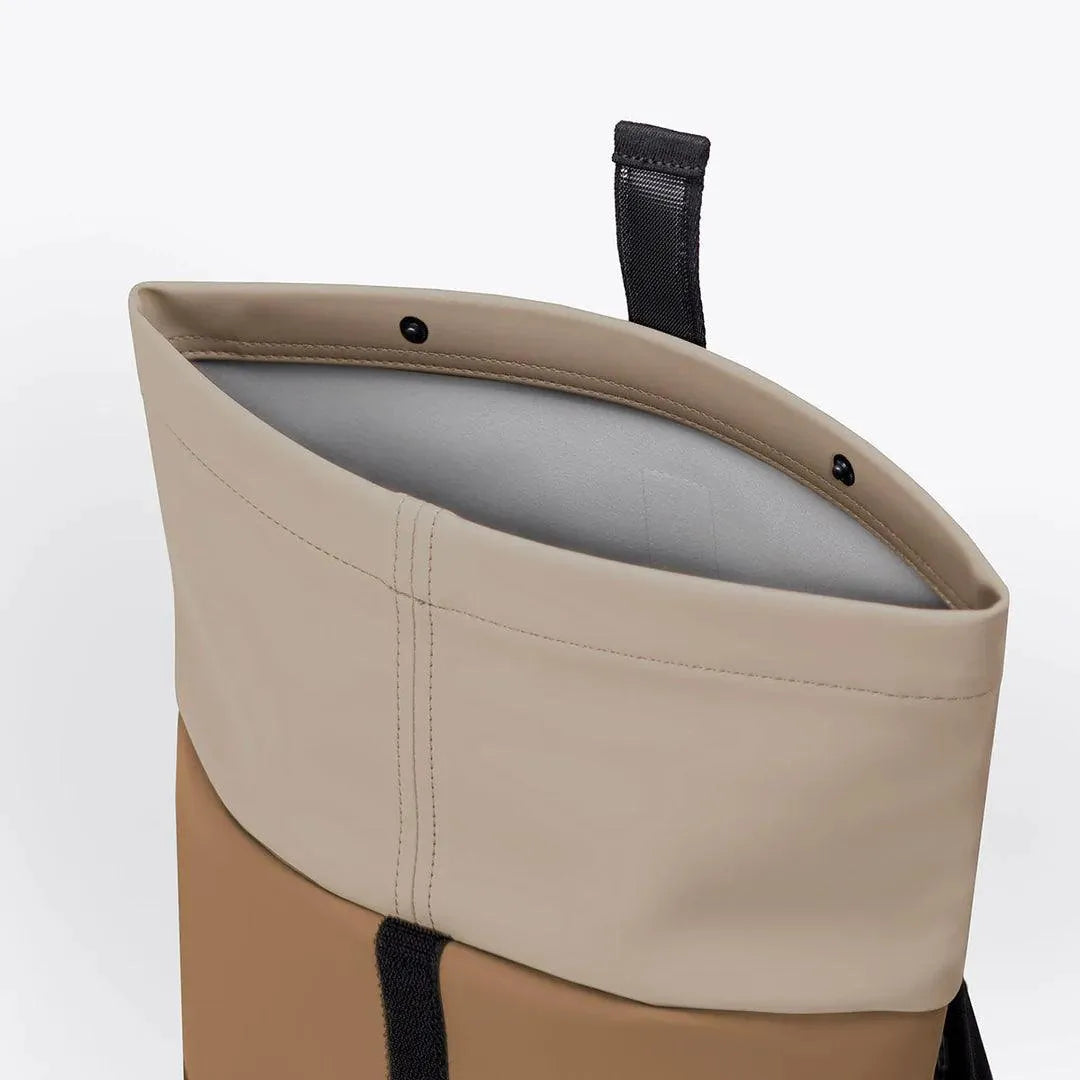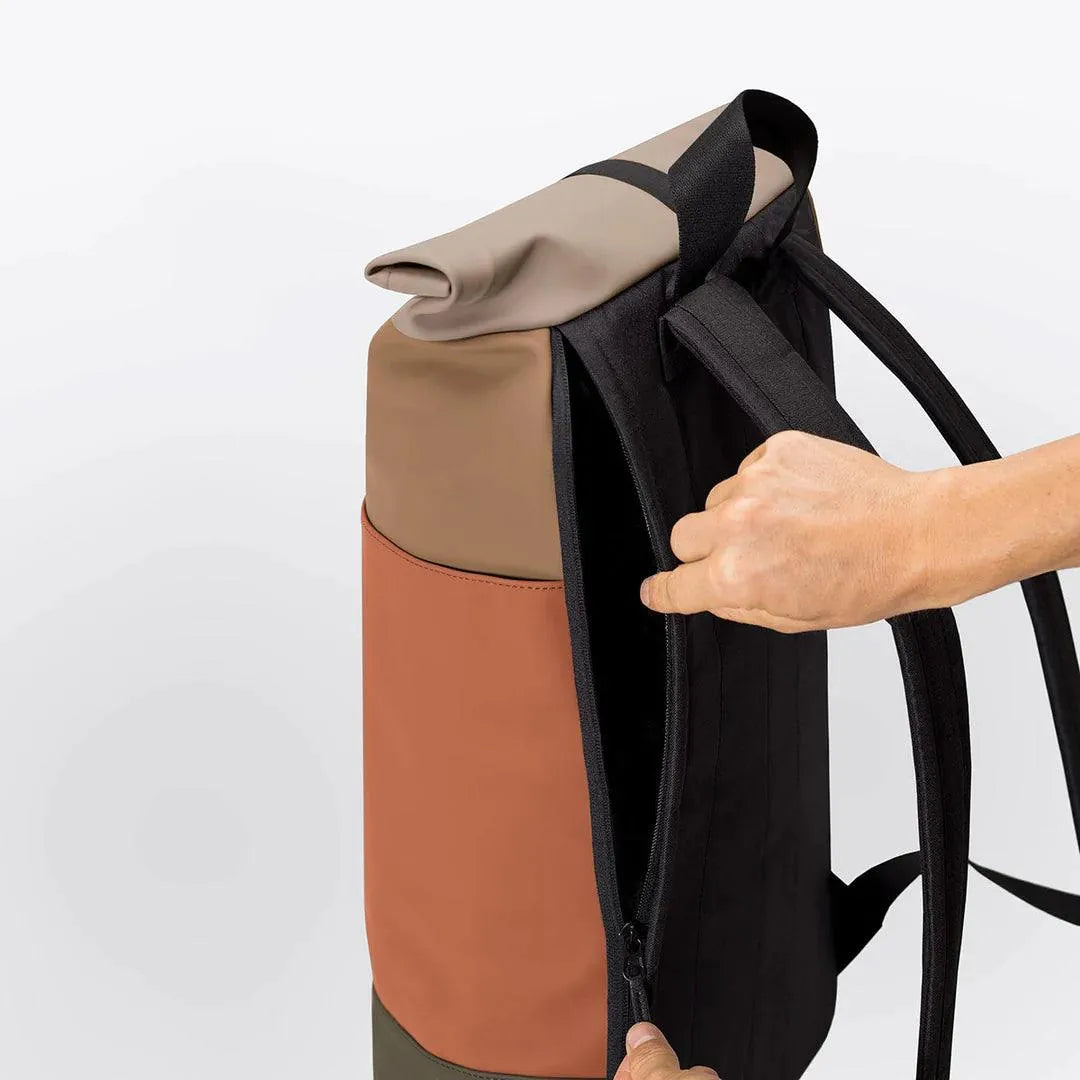 This minimalist backpack is suitable for any occasion. Whether on the road by bike, shopping or in the nightlife. The roll top closes with a hook and loop fastener and allows convenient filling of the Hajo backpack.