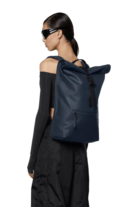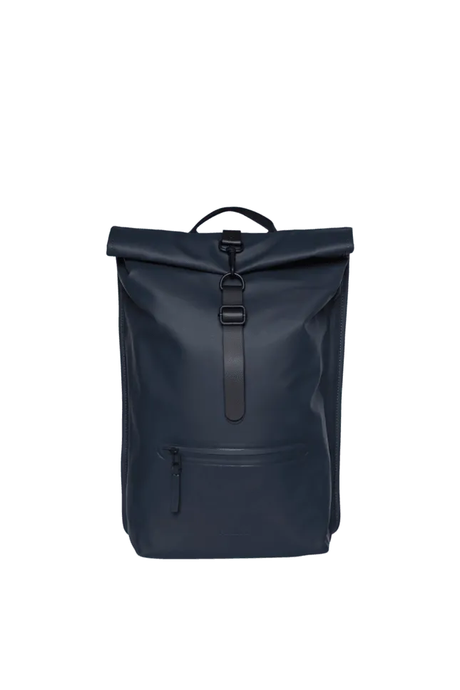 Rolltop Rucksack is Rains' version of a cycling backpack. Made with Rains' signature waterproof fabric, this functional backpack has a roll-up closure with an adjustable strap with a loop for a bike lock or similar. The roll-up backpack has a large main compartment, an easy-access front pocket, and a side-access laptop compartment. It is completed with a padded back, adjustable shoulder straps, a chest strap, and original Rains hardware.