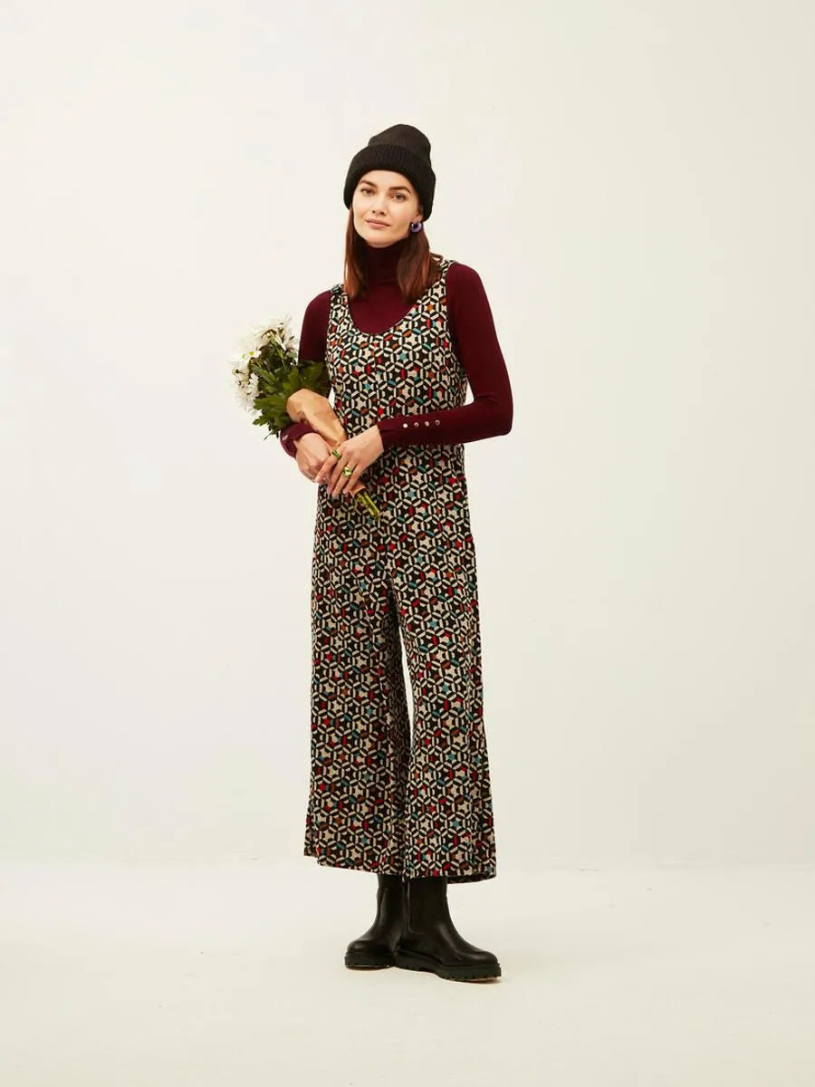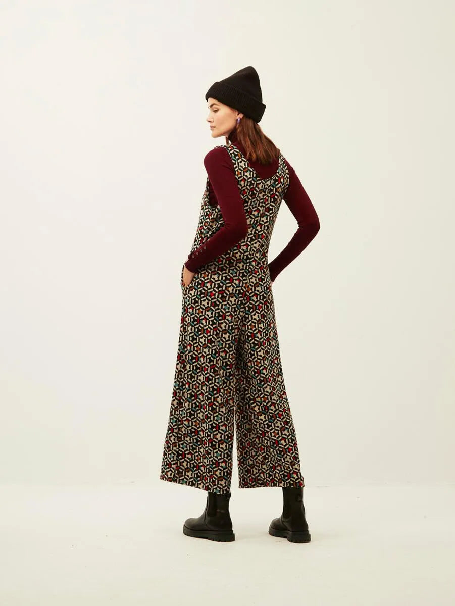 Long jumpsuit in Off White Kaleidoscopic print. Sleeve straps and pockets.