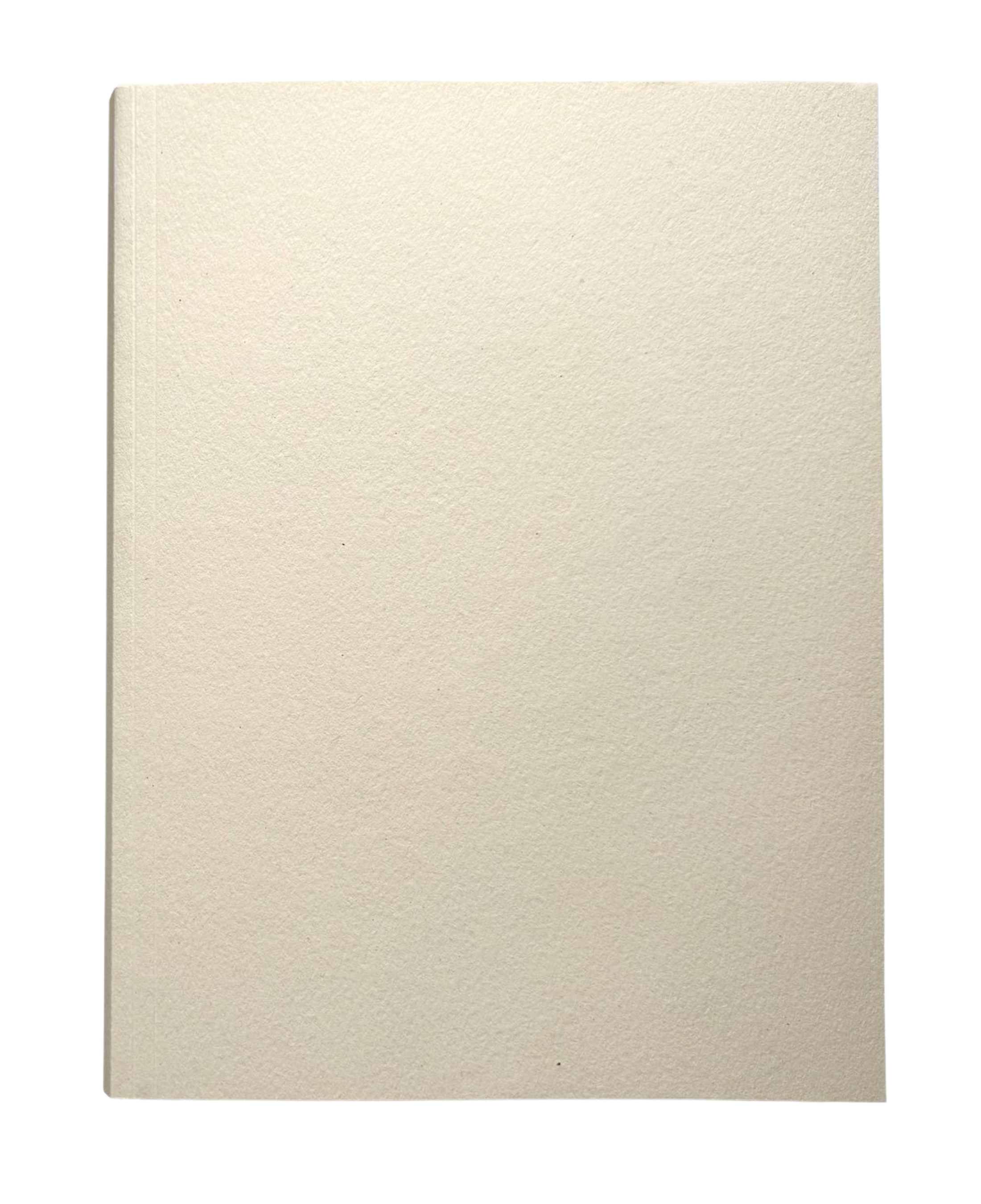 Toda la publicación está impresa en papel 100 % reciclado, sin procesos intensivos de blanqueado. Este material presenta variaciones naturales, pequeñas inclusiones y marcas propias del reciclaje, asumidas como parte del diseño bajo una estética wabi-sabi, donde la imperfección se convierte en valor visual y conceptual.