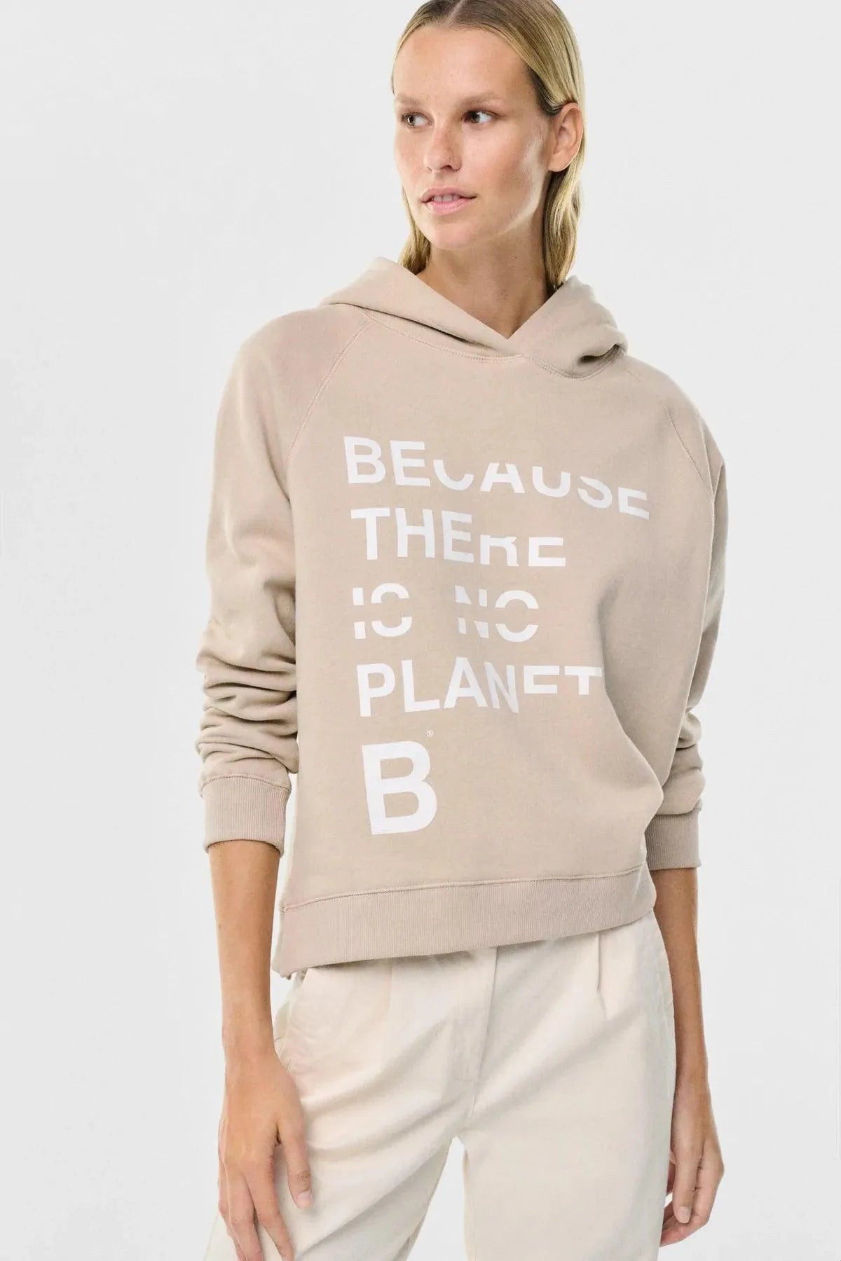 The Plin sweatshirt is made with organic and recycled cotton, with which significant savings are achieved in the use of water and, in addition, we give a second life to textile waste. It has the phrase "Because there is no planet B" printed on the front with a big B. It is very comfortable, it has a hood and Raglan sleeves.
