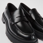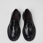 Mocasines negros para mujer de piel vacuna con plantillas OrthoLite® Recycled™ y suelas de goma.