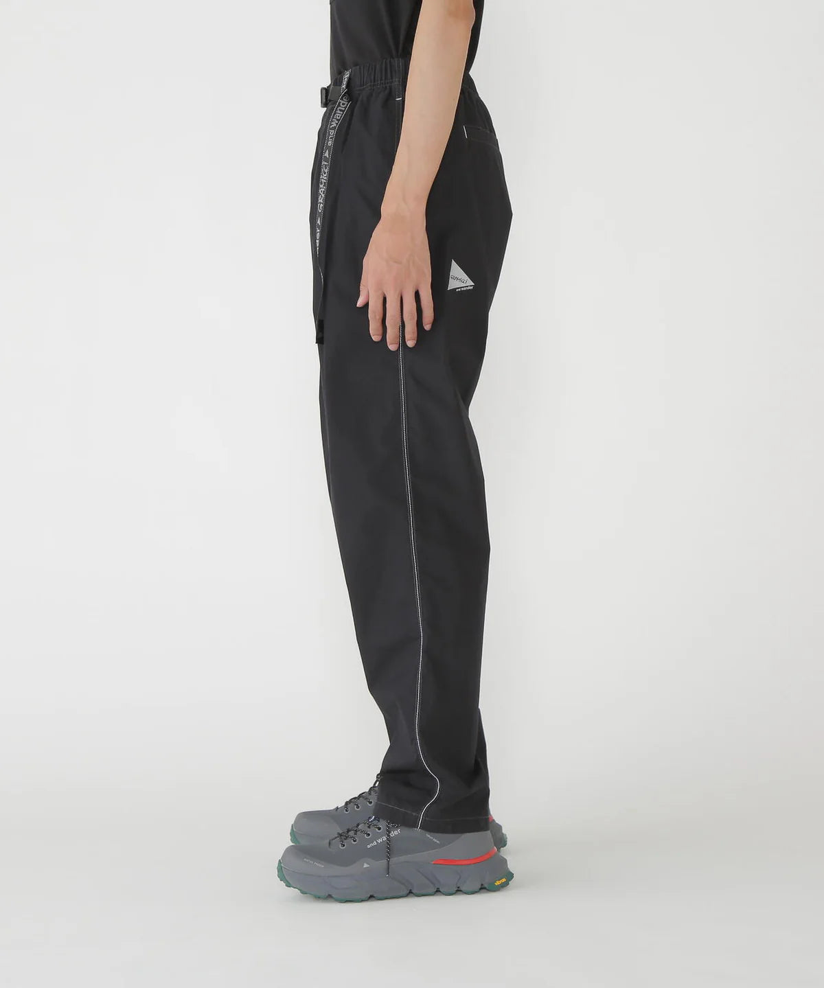 Es un pantalón de colaboración entre Gramicci y and wander con enfoque utilitario y uso versátil.