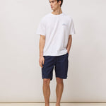 Las bermudas incorporan bolsillos funcionales y bolsillos traseros que aportan practicidad para el uso cotidiano. En uno de ellos aparece el parche característico de la marca, un detalle discreto que introduce identidad visual sin dominar el diseño.