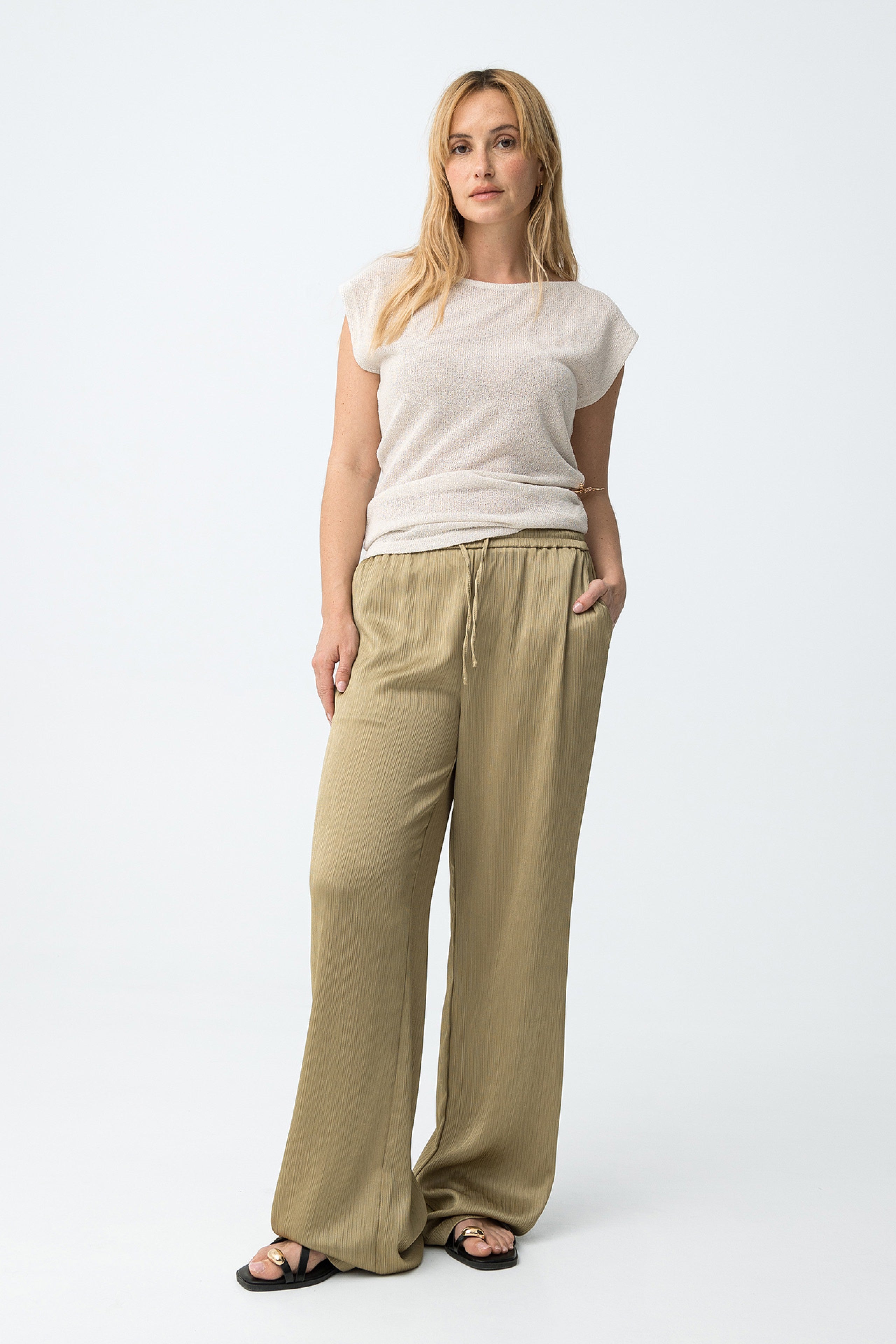 En conjunto, el resultado es limpio y fácil de llevar. Tiene la sencillez de una prenda base, pero con un detalle suficiente como para no sentirse completamente plana.