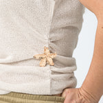 El detalle de estrella en el lateral derecho introduce un pequeño acento visual que rompe la uniformidad de la pieza sin alterar su carácter sobrio. Es un gesto discreto que añade identidad sin volver la camiseta más recargada.