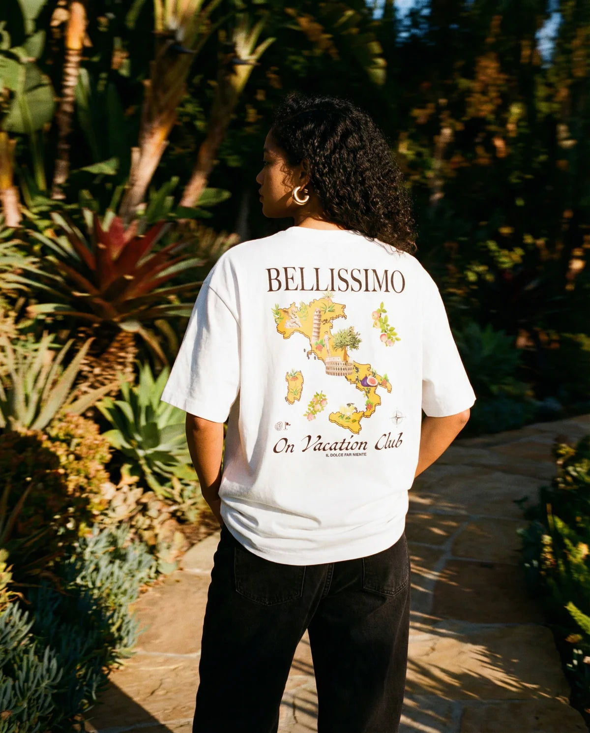 Es una camiseta ideal para quienes valoran las prendas con mensaje, las marcas con universo propio y las referencias visuales ligadas al verano, los destinos y la cultura del viaje.