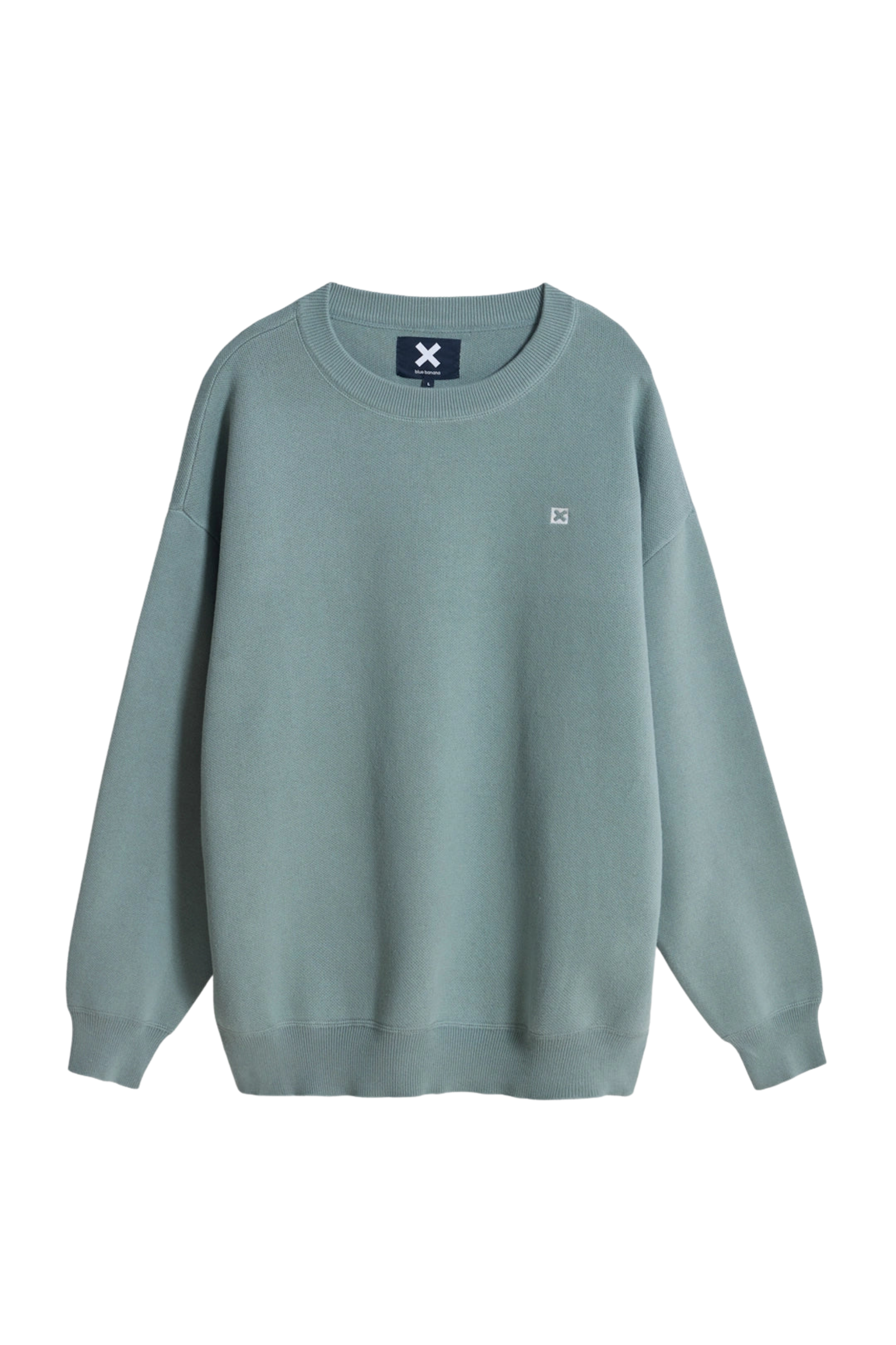 El Core Knitted Sweater presenta un bordado decorativo del logotipo en el pecho en color a contraste, un detalle discreto que refuerza la identidad visual de Blue Banana sin recargar el diseño.