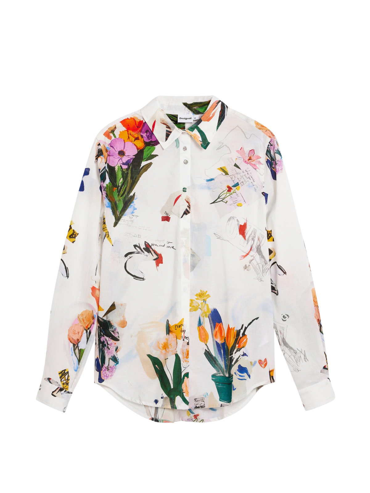 Camisa de manga larga de corte regular y estampado de efecto collage con plantas y flores.