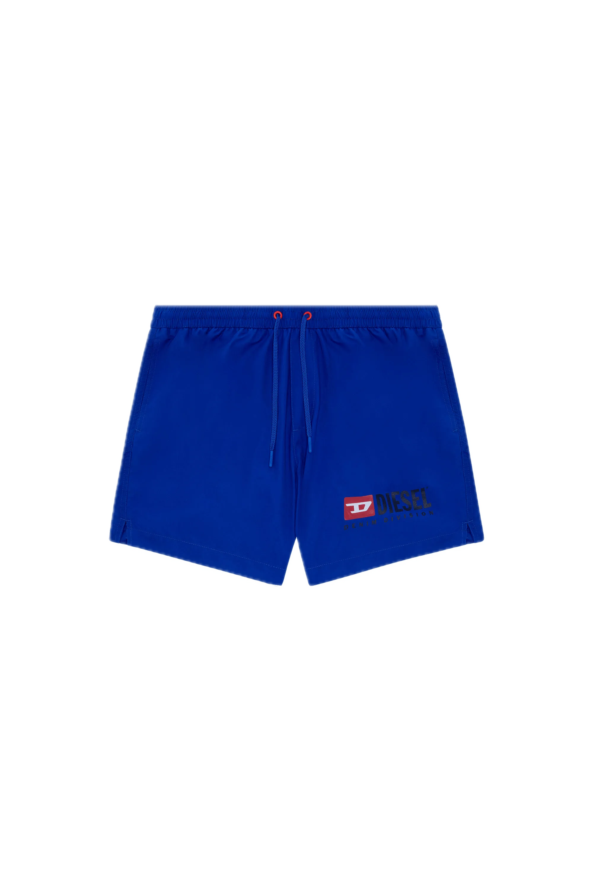 Bañador de longitud media para hombre confeccionado en poliéster reciclado con el estampado del logotipo Diesel For Successful Living en la pierna. Está adornado con ojales rojos en contraste.