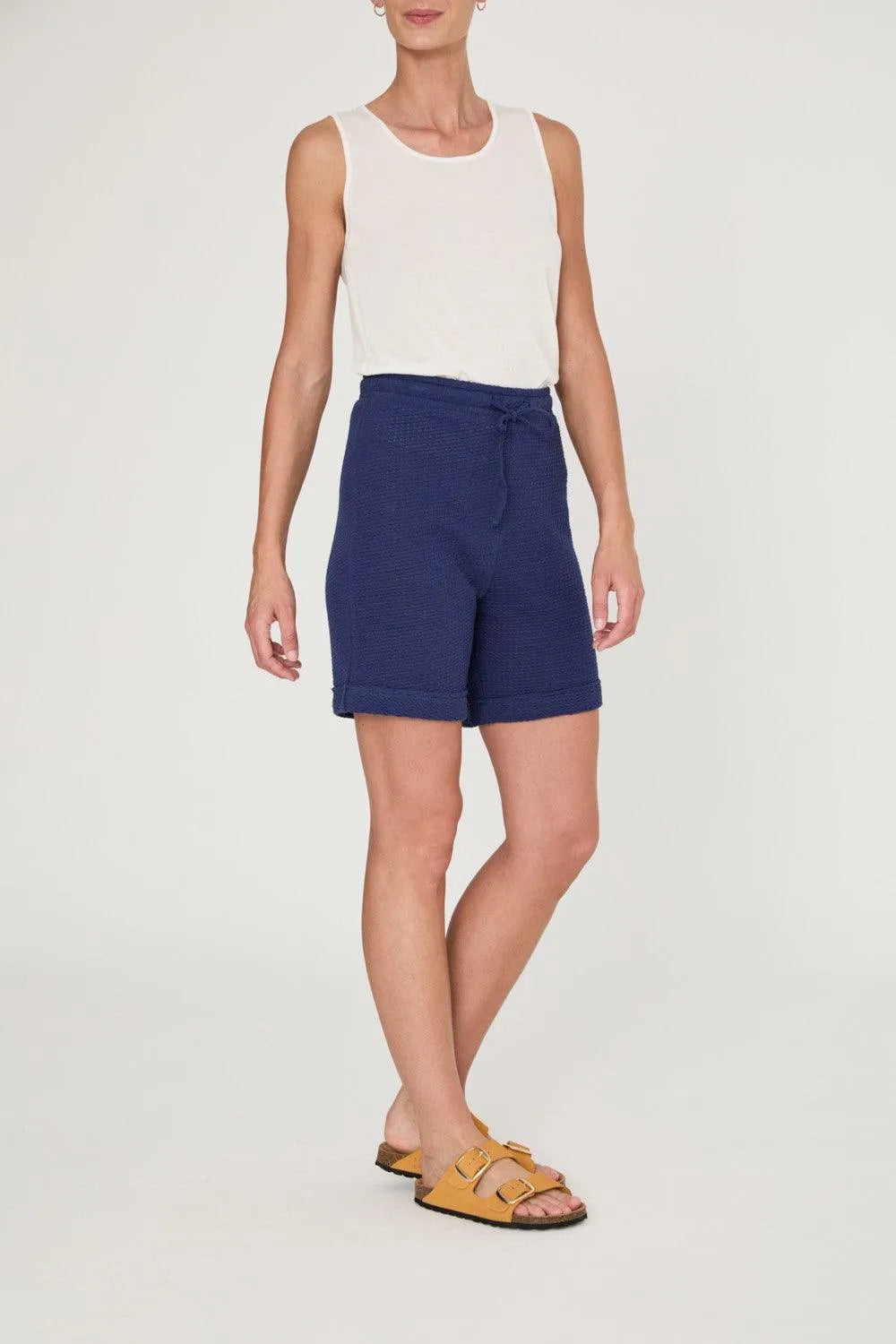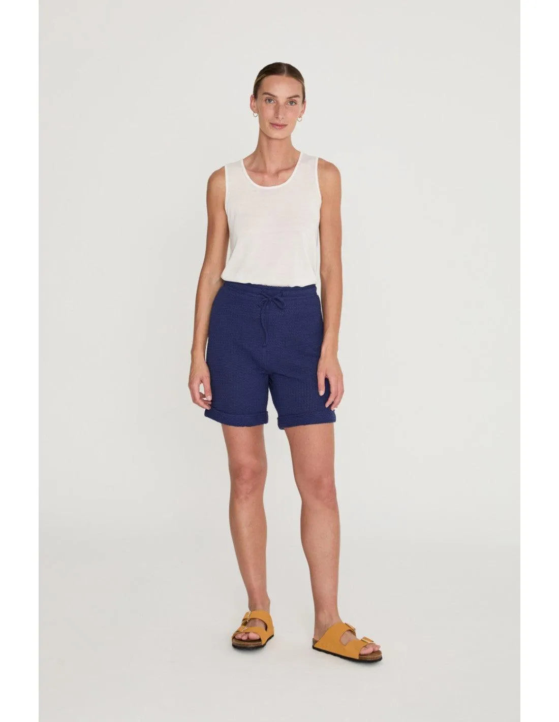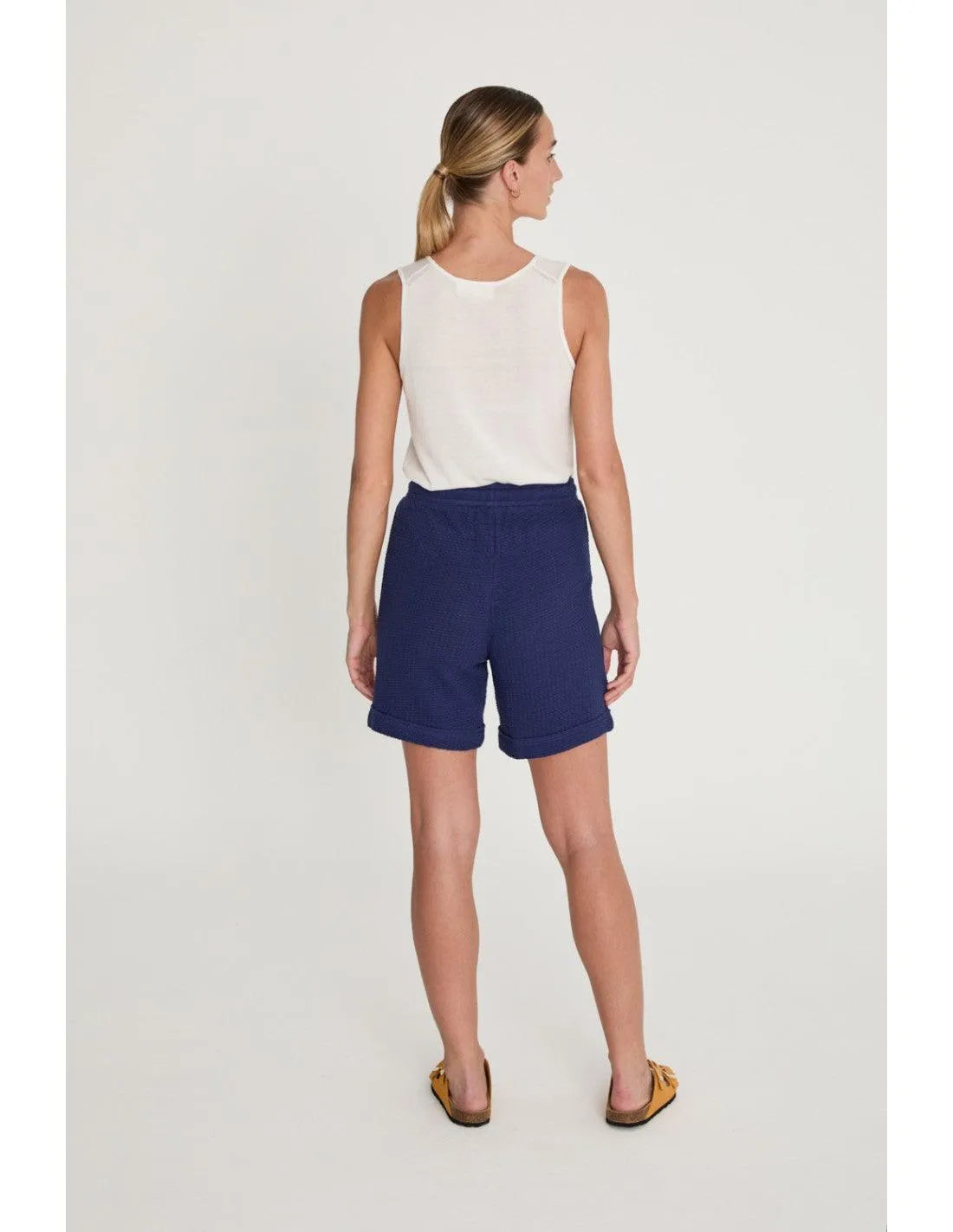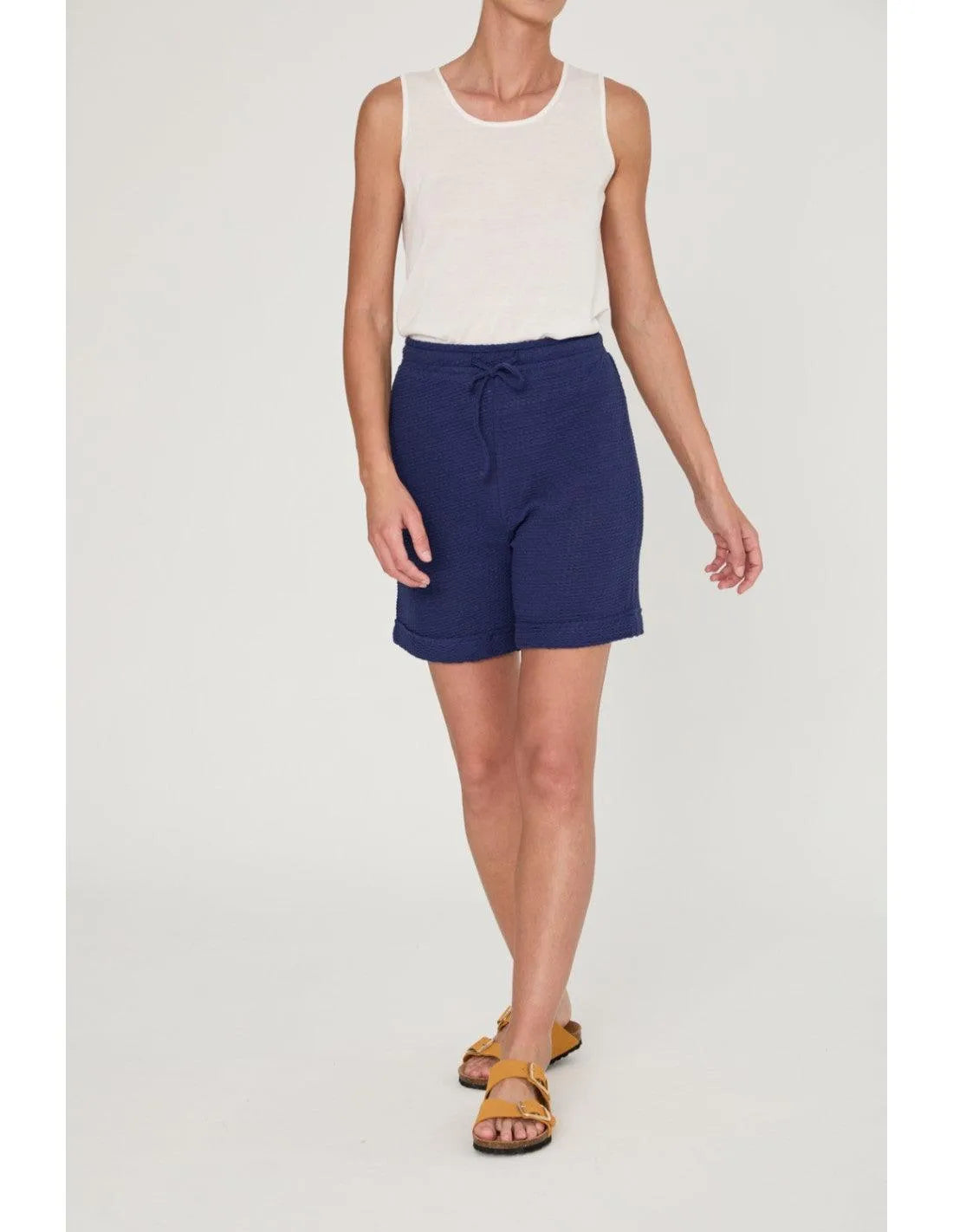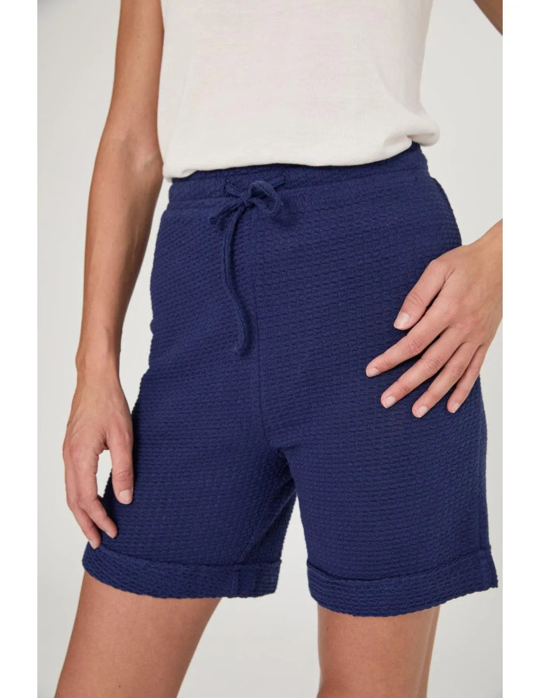 Bermuda relajada corta. Cintura con goma ancha, cordón para ajustar y detalle de dobladillo en el bajo de la pernera. Crea el total look con el top CHELY o el polo ANDREY.