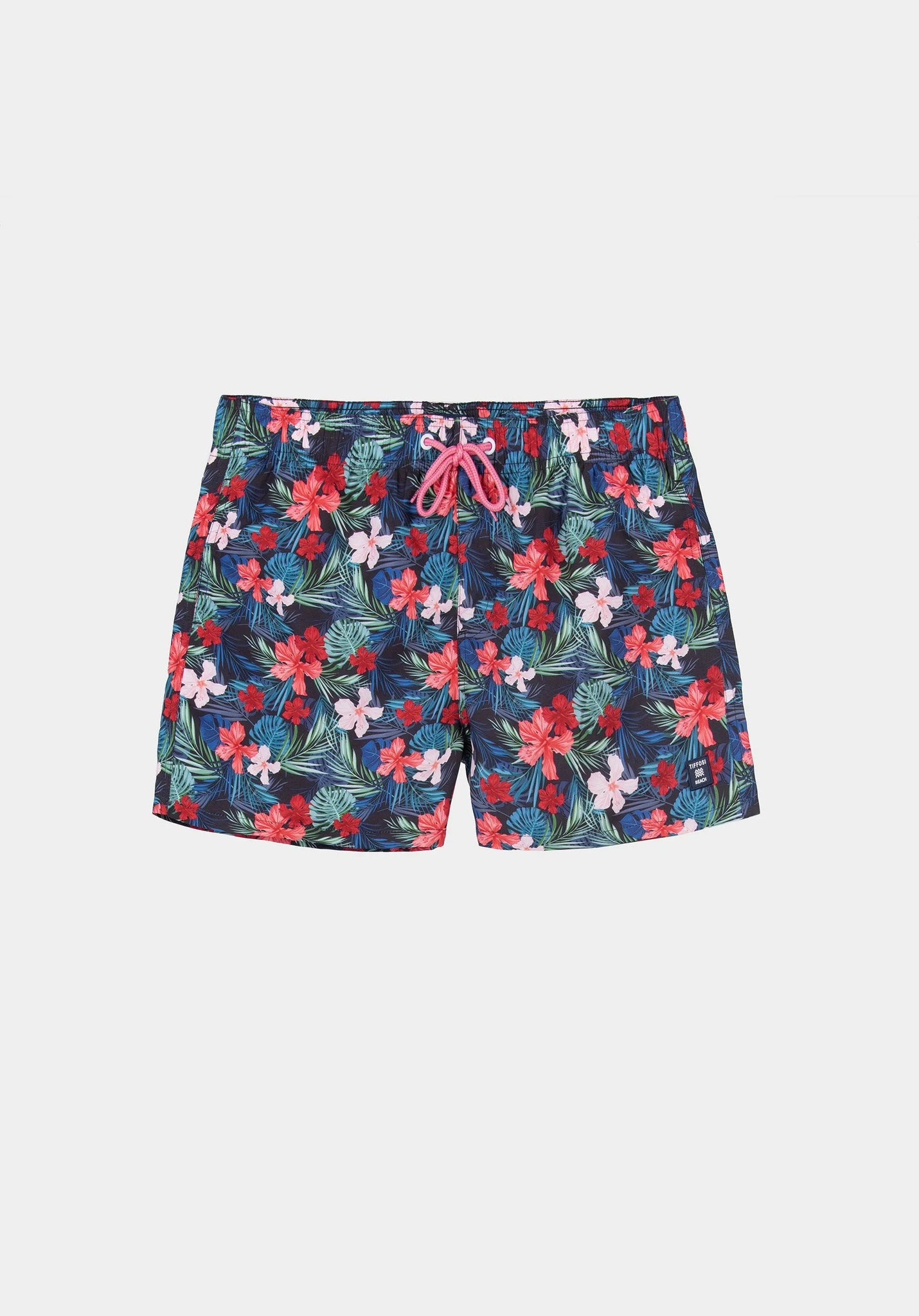 Bañador tipo bermuda corta estampada.