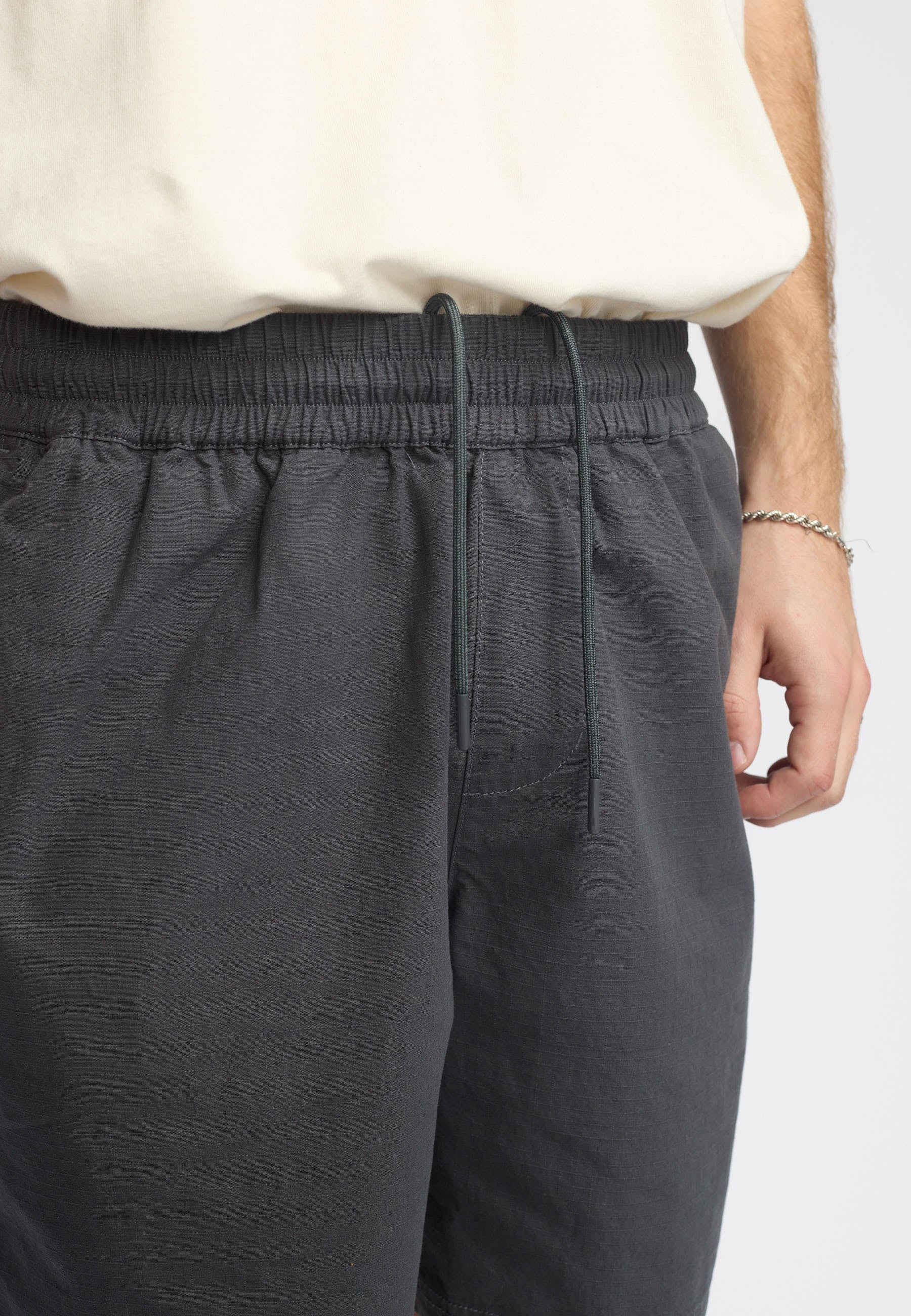 La versión moderna de los pantalones cortos informales: un complemento perfecto para cualquier atuendo diario. Estos pantalones son de corte ligeramente holgado y están confeccionados en algodón orgánico con un sutil estampado ripstop. Los pantalones cortos están diseñados con una cintura elástica con un cordón ajustable integrado, asegurando un ajuste perfecto para diferentes tipos de cuerpo. Incorporan dos bolsillos inclinados con un bolsillo adicional oculto con cremallera y un bolsillo trasero con la etiqueta de la marca «Revolution», que añade carácter a los pantalones.