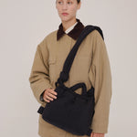 Este bolso versátil puede transformarse fácilmente en mochila, bolso de hombro o handbag, gracias a sus asas acolchadas ajustables. A pesar de su tamaño compacto, tiene capacidad suficiente para llevar todo lo esencial, incluido un portátil de hasta 14”, manteniendo siempre una silueta limpia y moderna.
