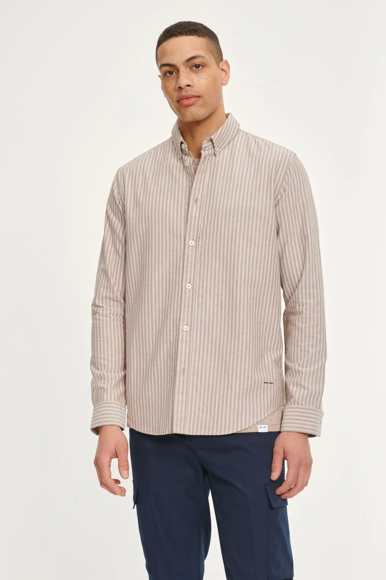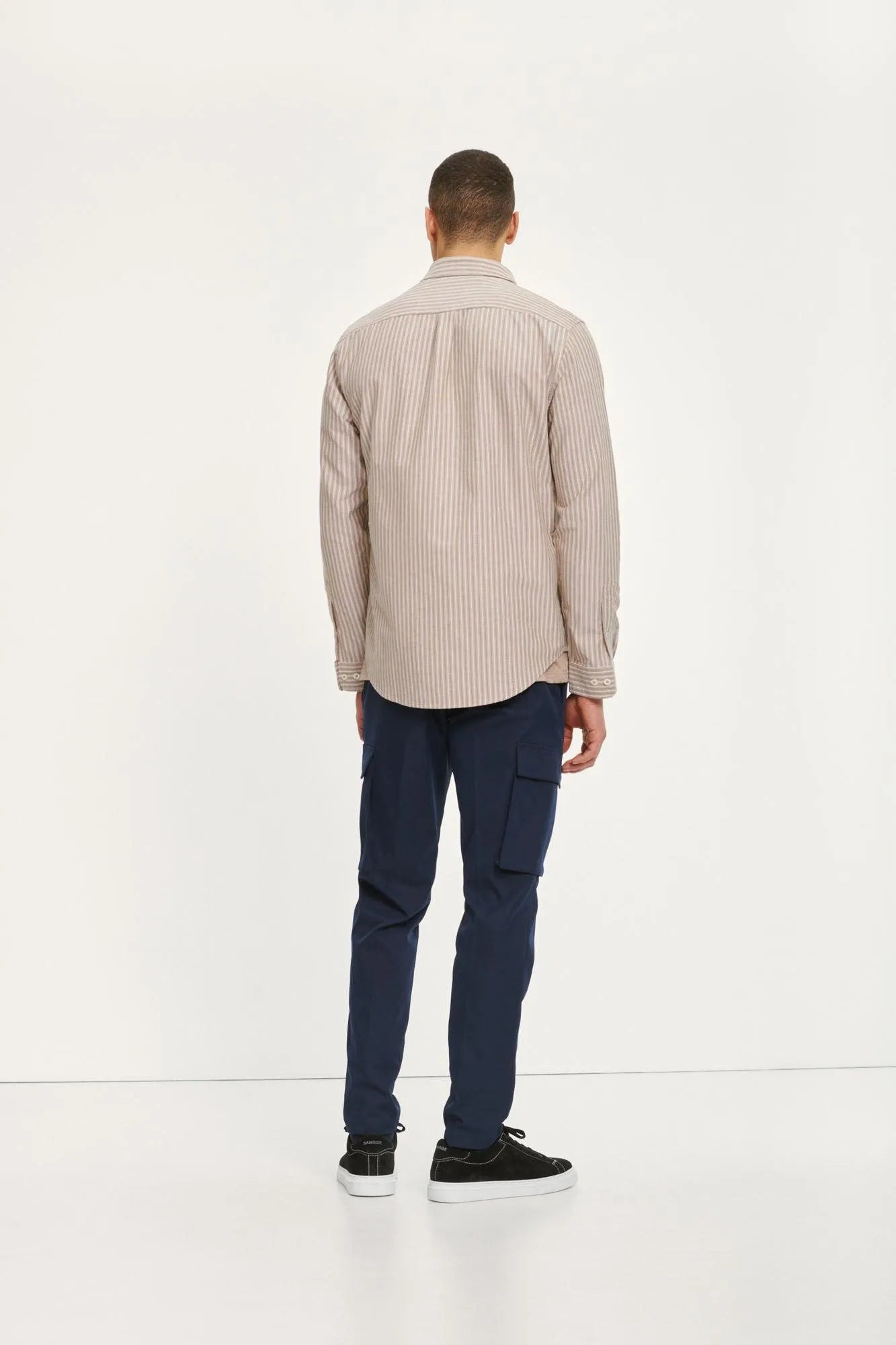 Camisa de manga larga. Ajuste regular. Cuello abotonado. Dobladillo curvo. Plisado en canesú trasero. 100% algodón orgánico con acabado de lavado enzimático.