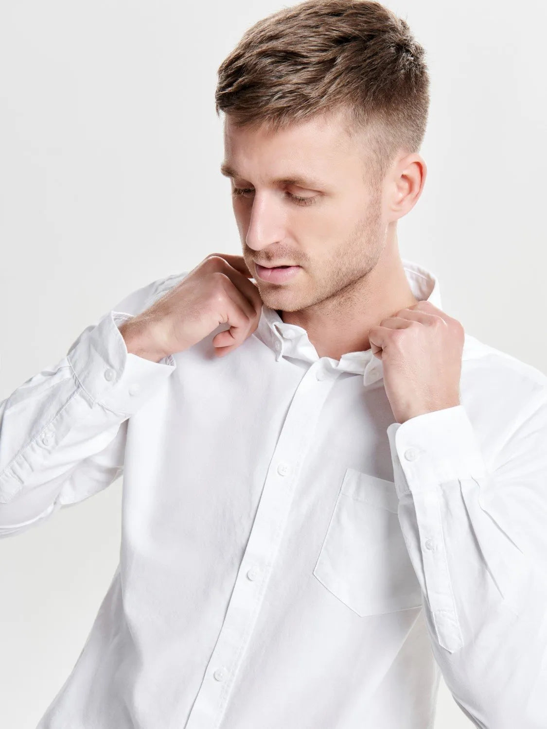- Camisa de manga larga - Un bolsillo sin cierre en la pechera - Cierre de botones - Un botón en cada puño - Botones decorativos en el cuello - Largo: 77 cm en la talla L