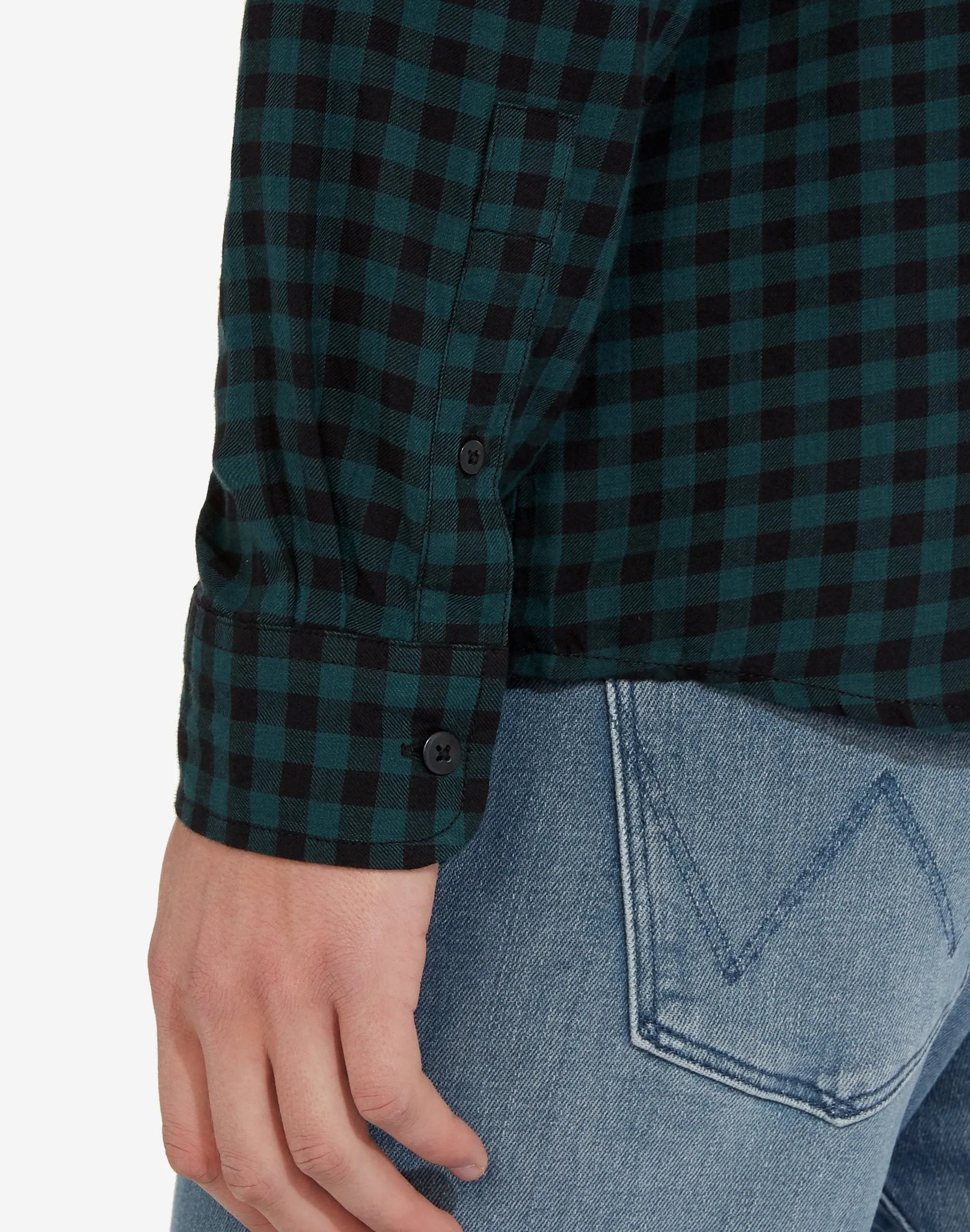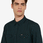 CAMISA DOBLE BOTÓN DE BOLSILLO EN CHEQUE VERDE Y NEGRO