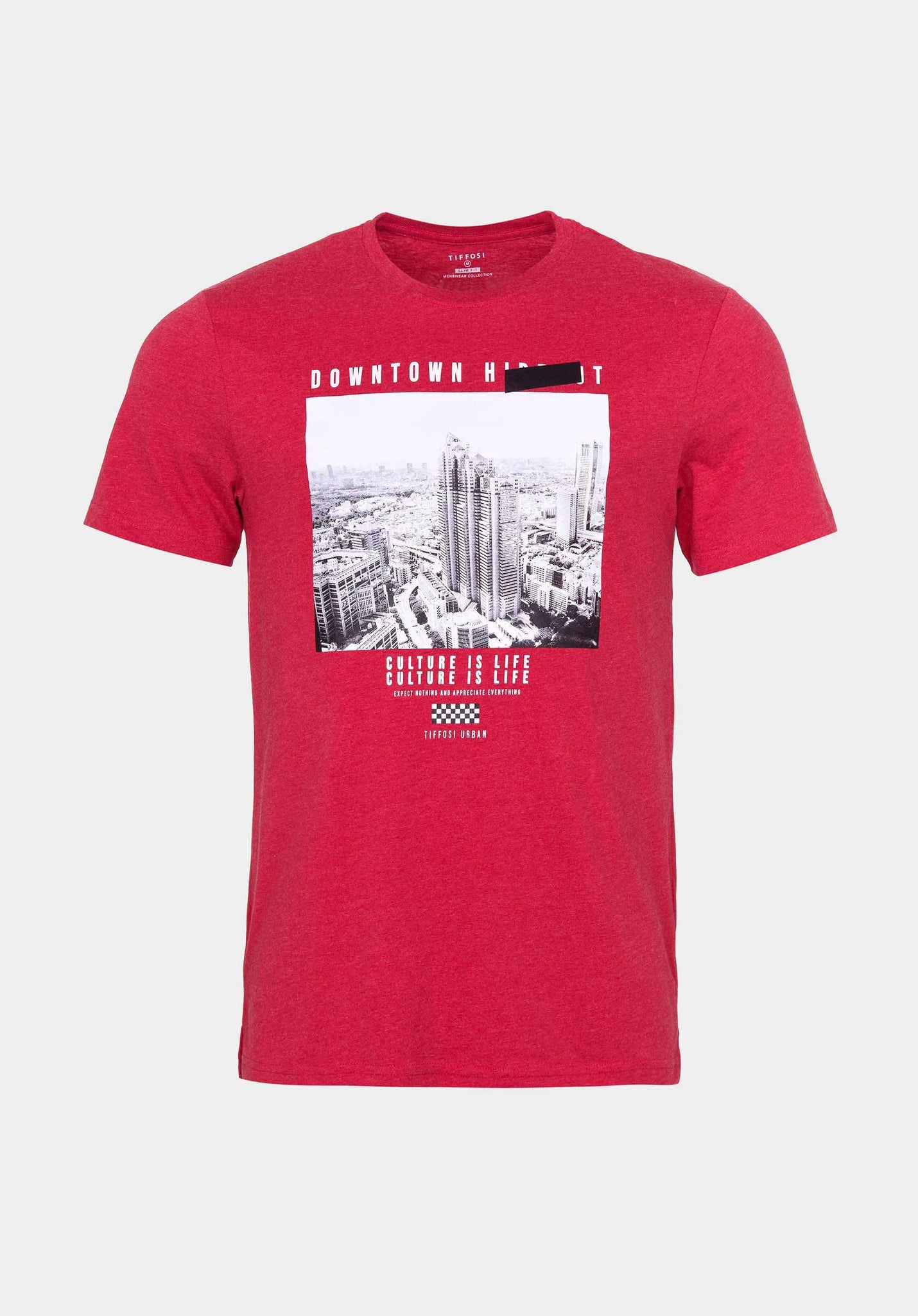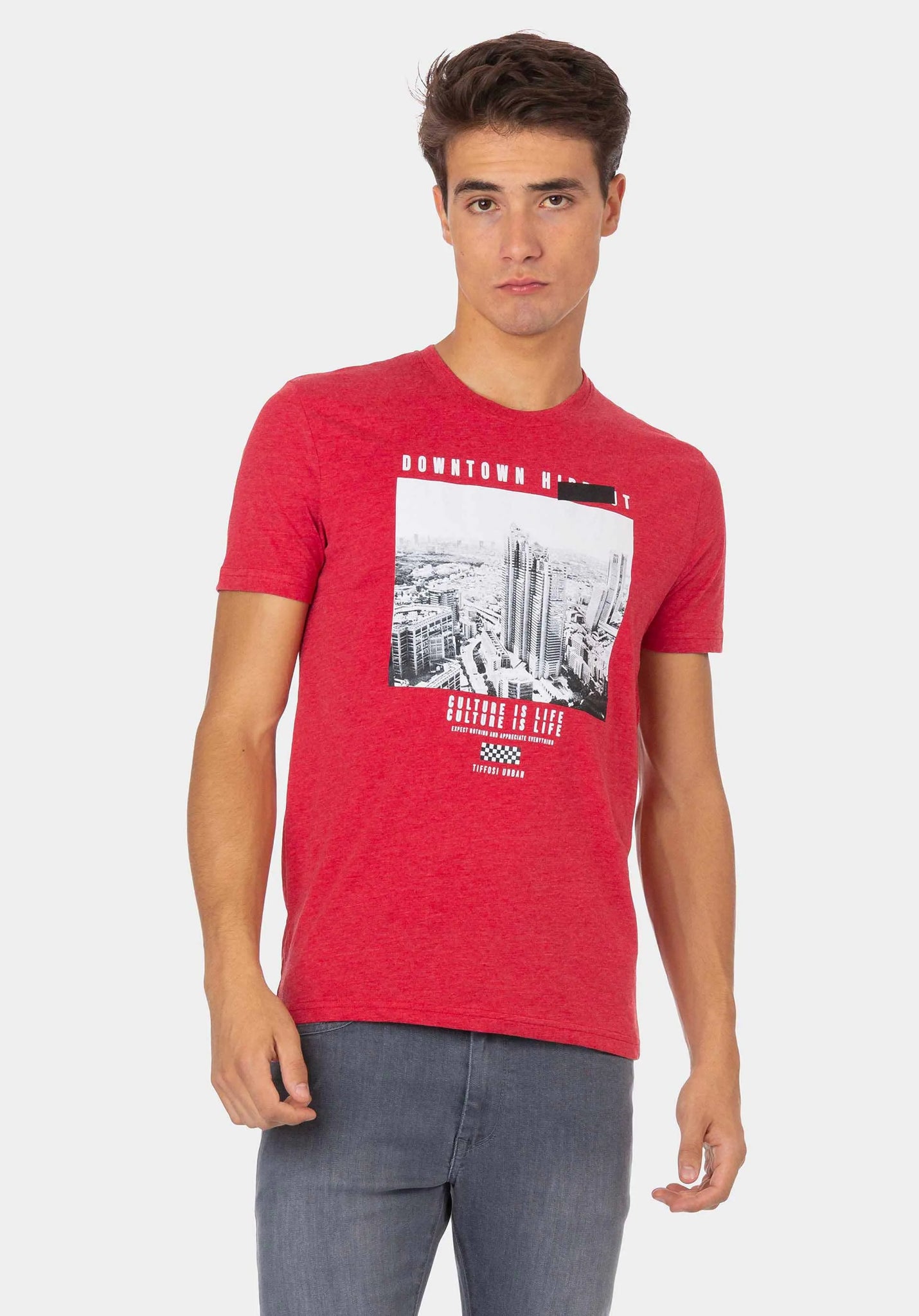 Camiseta manga corta en rojo vigoré con print en el pecho.