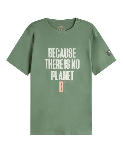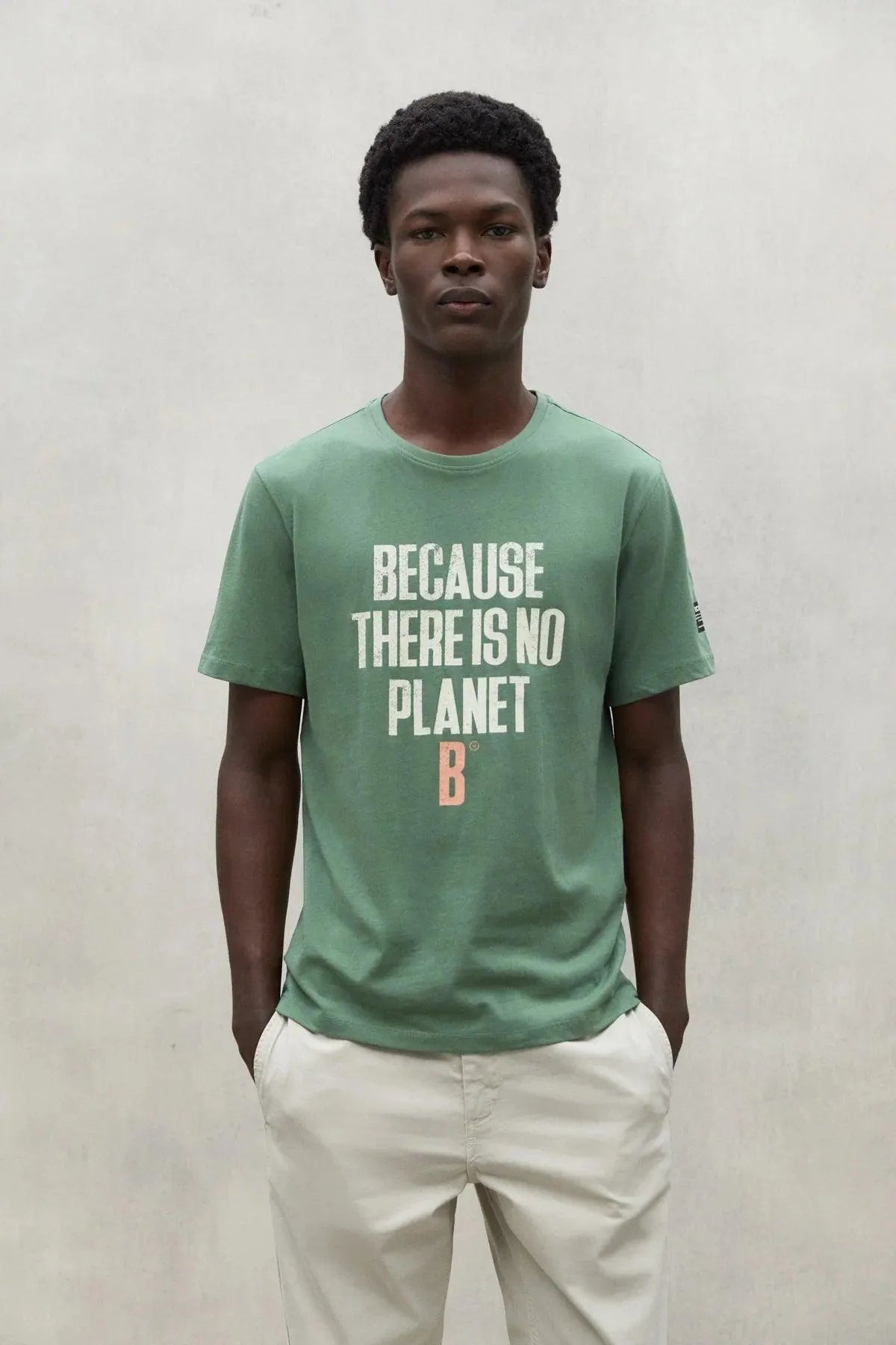 La camiseta Min de manga corta lleva en la parte delantera nuestro claim impreso: Because There Is No Planet B®. Por cada producto vendido de nuestra colección Because There Is No Planet B® donamos un 10% a la Fundación ECOALF para apoyar el proyecto Upcycling the Oceans, que ya ha reunido a más de 4.200 pescadores y retirado más de 1.450 toneladas de residuos del fondo del océano.
