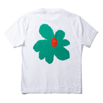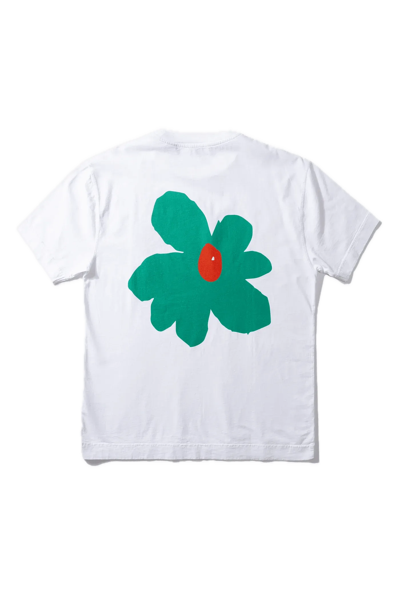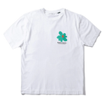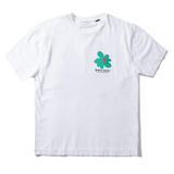 Camiseta blanca de manga corta. Fabricada con algodón 100% orgánico. Ilustración en la parte superior izquierda y en la espalda.