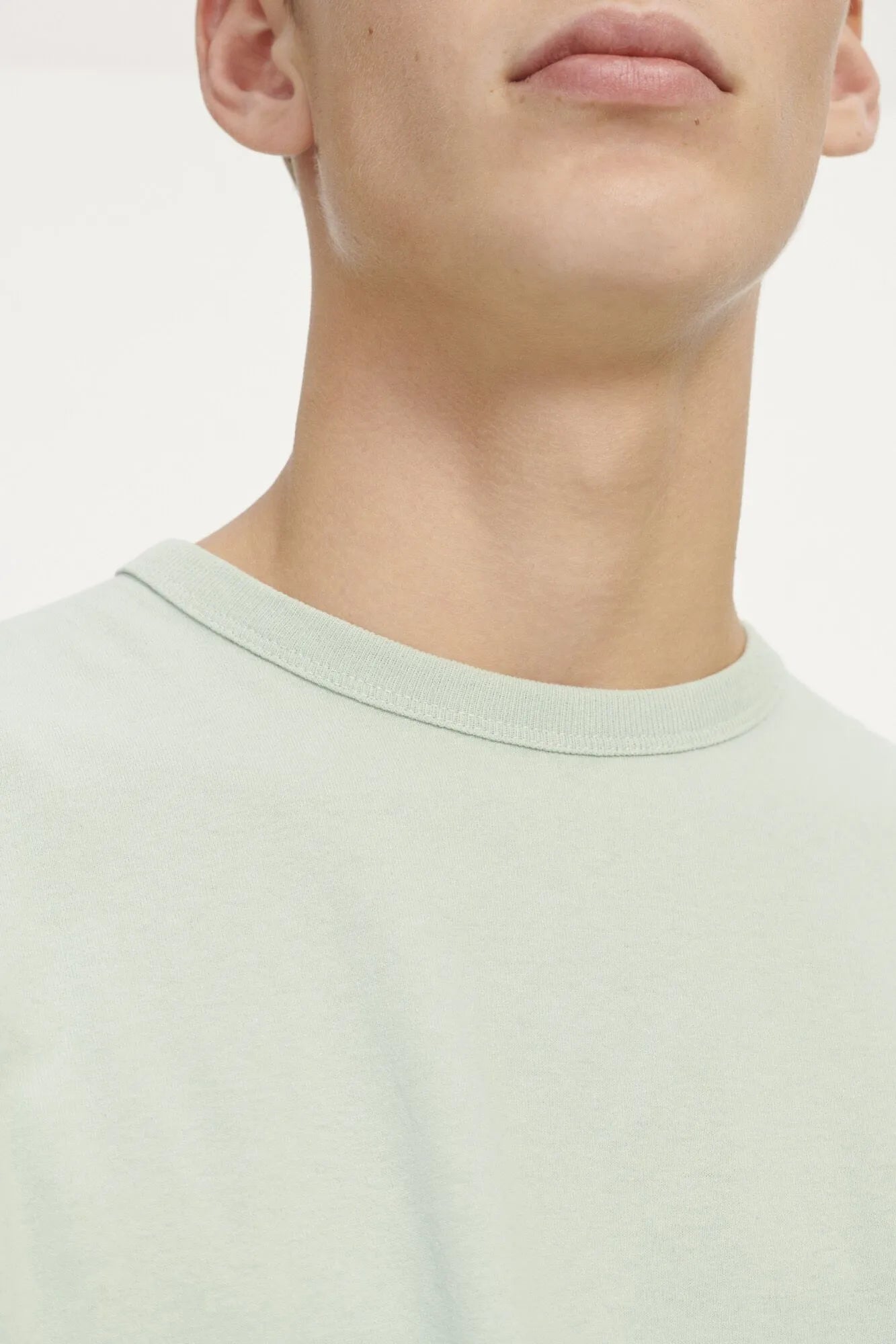 Camiseta de manga corta. Etiqueta del logo en el dobladillo. Escote redondo con ribete acanalado, panel de yugo en la parte posterior del cuello. Costuras gemelas de aguja. Tejido de punto de algodón 100% orgánico.