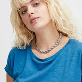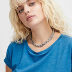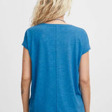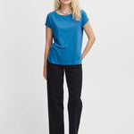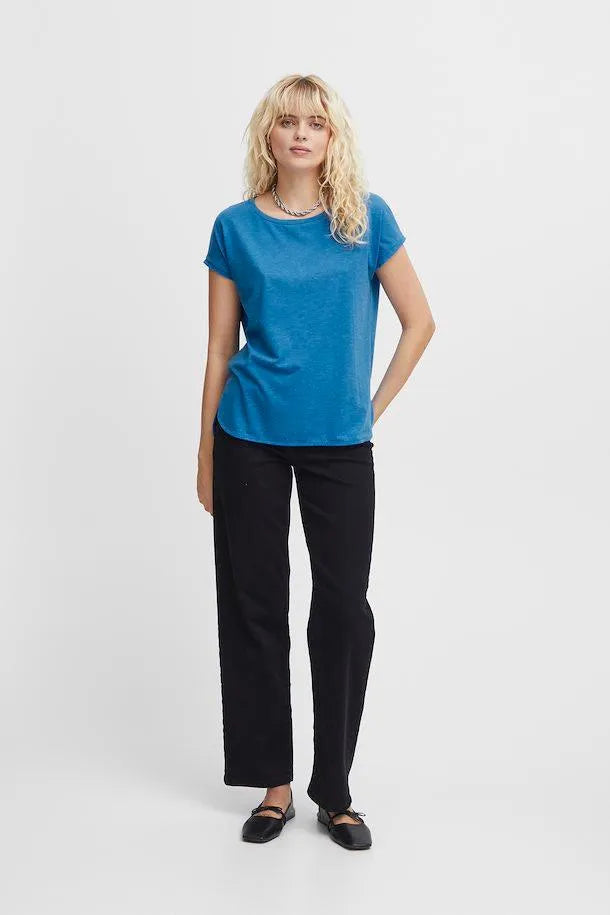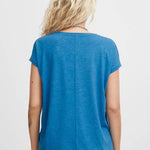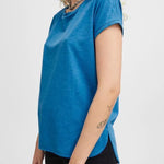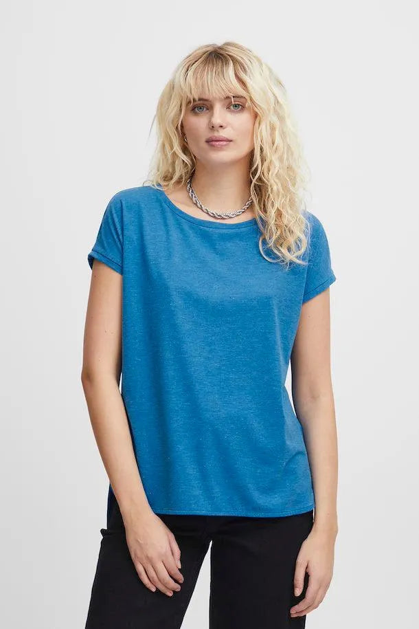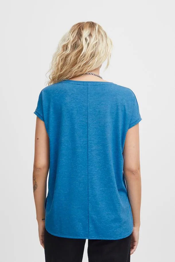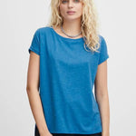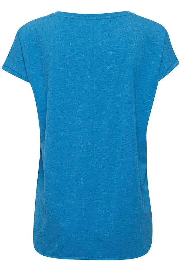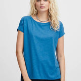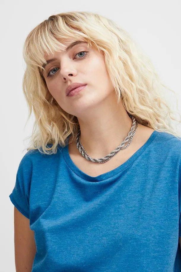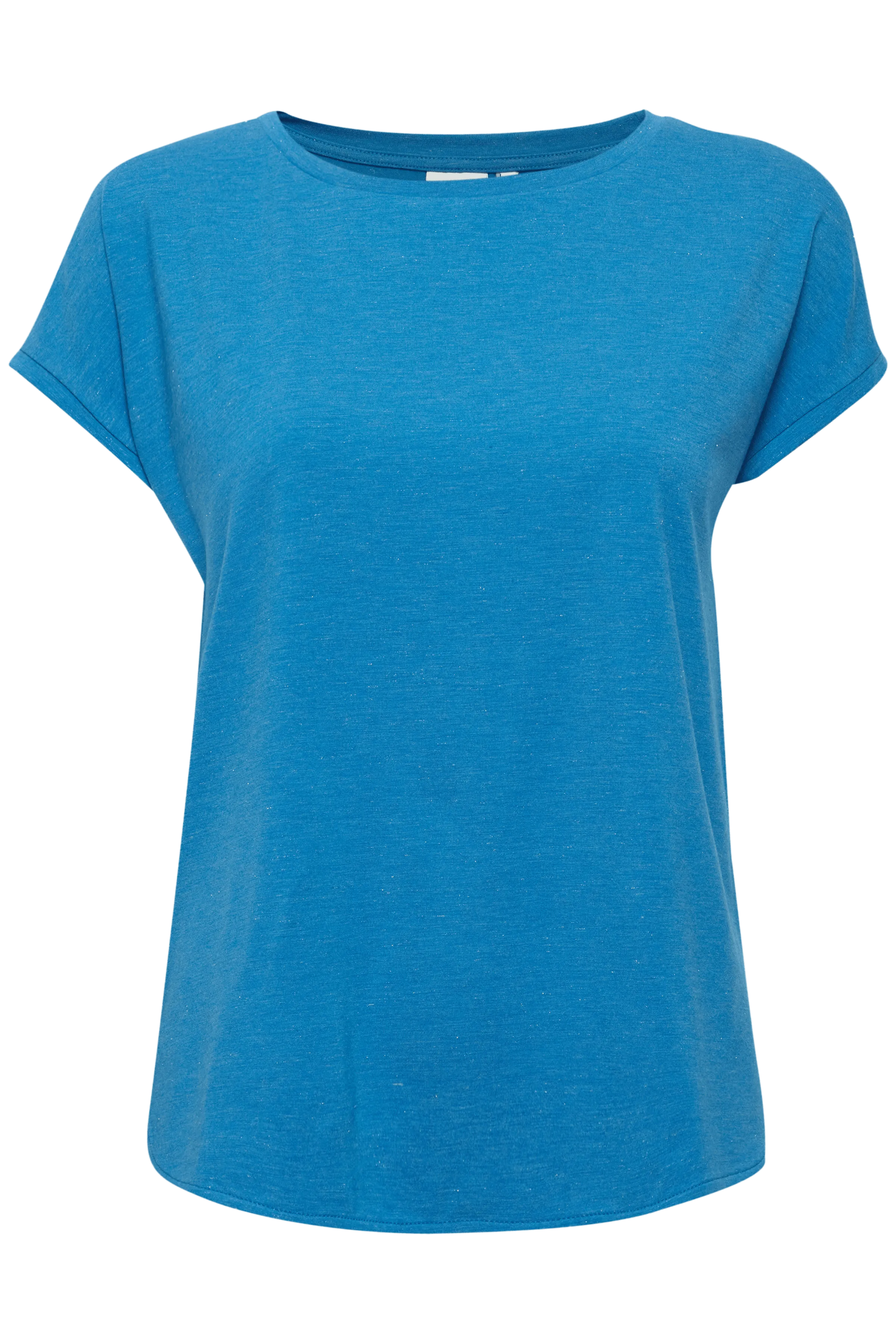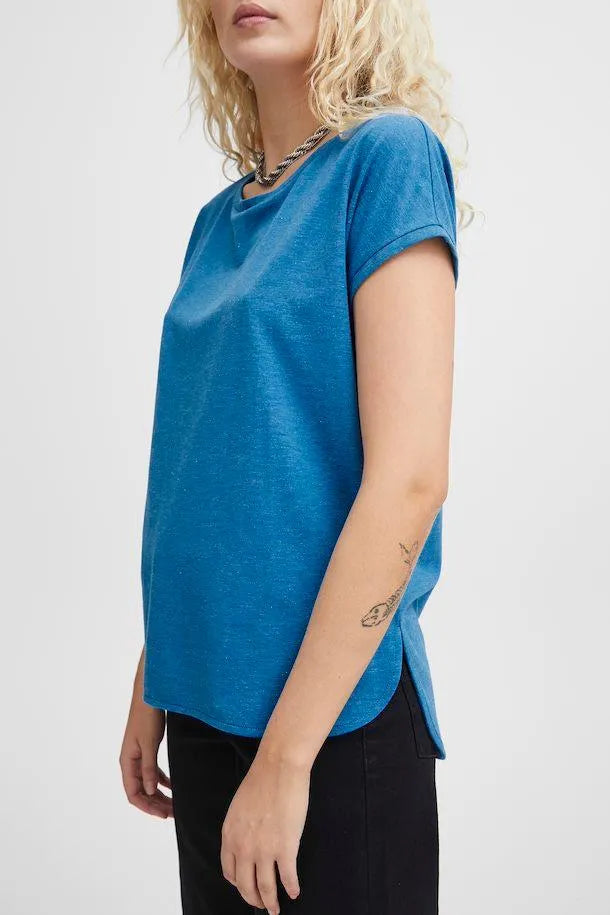 Camiseta de manga corta de la marca ICHI, en color azul con detalles de hilo metalizado.